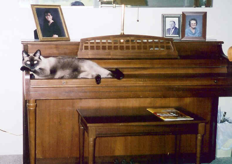That is, as long as it’s not in use for a cat bed. *sigh* Seriously. The cats think that it’s a large, good looking cat bed. They are always amazed when I open up the keyboard and they hear the noise coming from it. My giant cat bed currently sits in the living room so I don’t have a lot of opportunities to play it. It seems that either somebody is watching TV or else my dad is upstairs in bed (which is right above the living room). Thus, the fact that I can play the piano at 10 pm if I want makes me happy! The only ones who will complain will be Bob and Chester. And unlike kids, there’s no law against putting cats in time out by shutting them in the bathroom for 15 minutes. 🙂