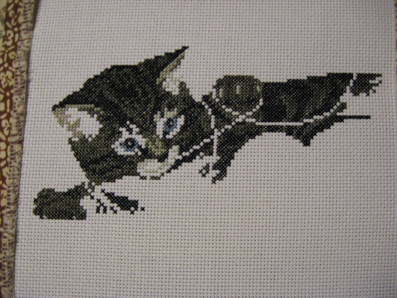 I didn’t think that I had done much stitching on my kitten this week, but when I just went back and looked at the pictures I guess that I have! This little guy is just too stinkin’ cute! It makes me want to scratch his belly. lol