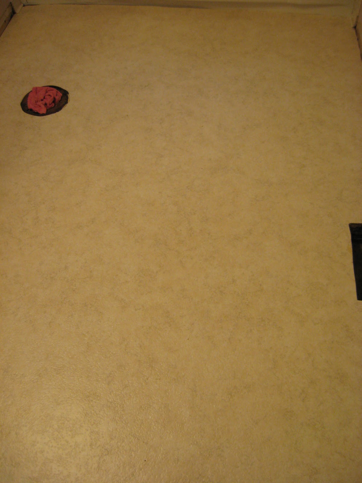 It’s kind of a tannish-yellow with marbling running through it. It’s quite nice in person. So Tuesday afternoon my dad and I laid the vinyl flooring. It turned out pretty nice!