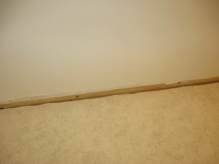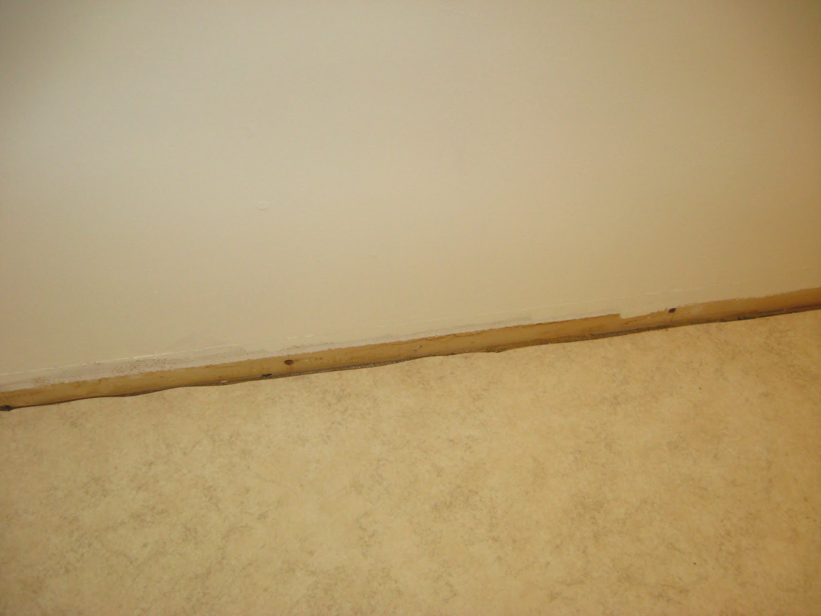 The walls turned out to be almost the color of french vanilla ice cream. With the pink walls beneath, though, it gives it kind of a pinkish cast. It doesn’t really show up well in this picture. I did learn a couple things tonight. 1) I get bored very easily with painting. 2) Even though it’s not art class, I still suck at painting. lol I wanted to try to show the contrast between the wall and the floor (again, the trim will be installed later):