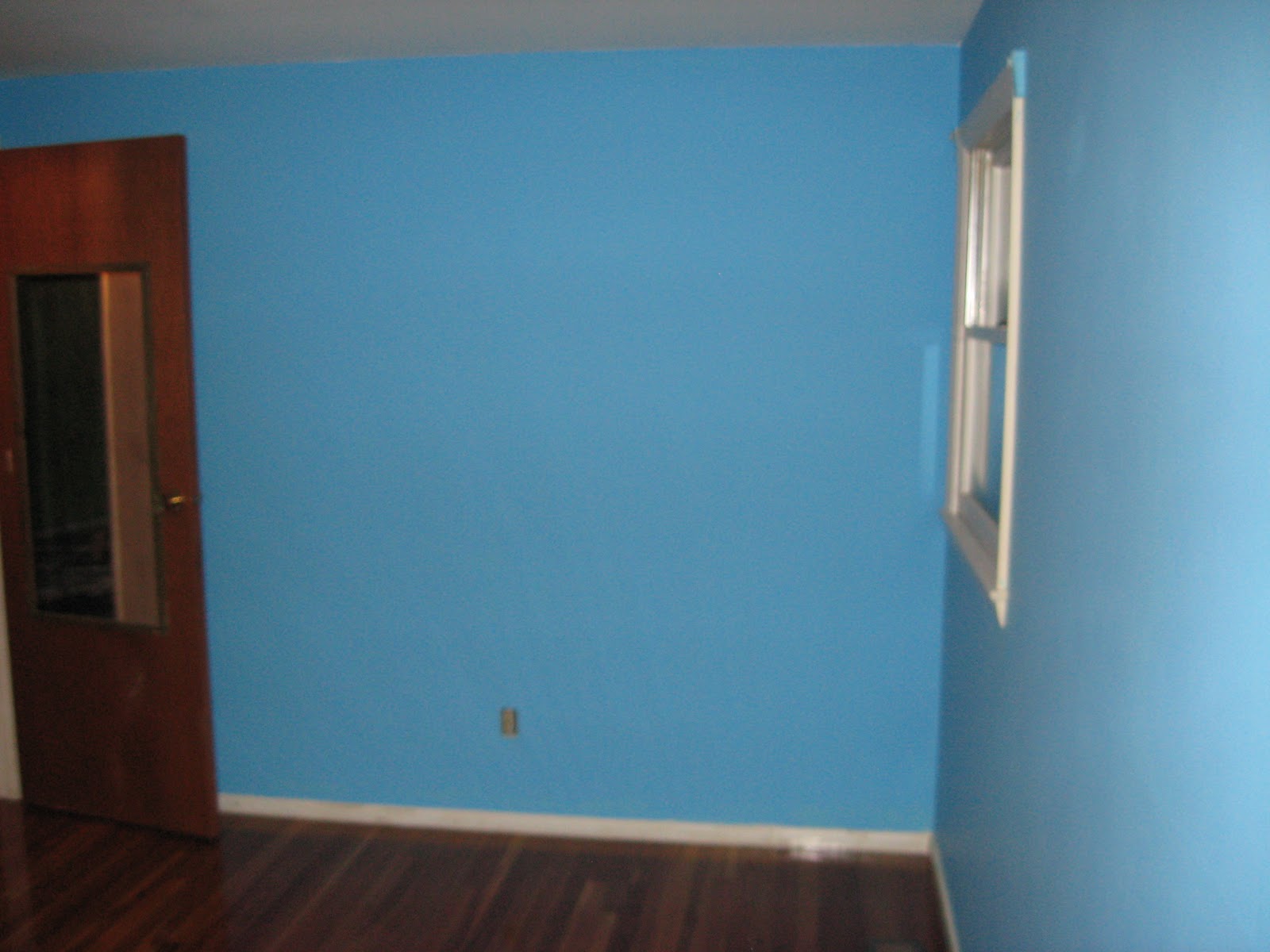 Then I decided that I was going to paint my bedroom blue. I picked out a color and put it on the wall, and BOY! Is it blue!! The picture really doesn’t show the true color. Think of how blue the caribbean ocean is, and that is close. lol
