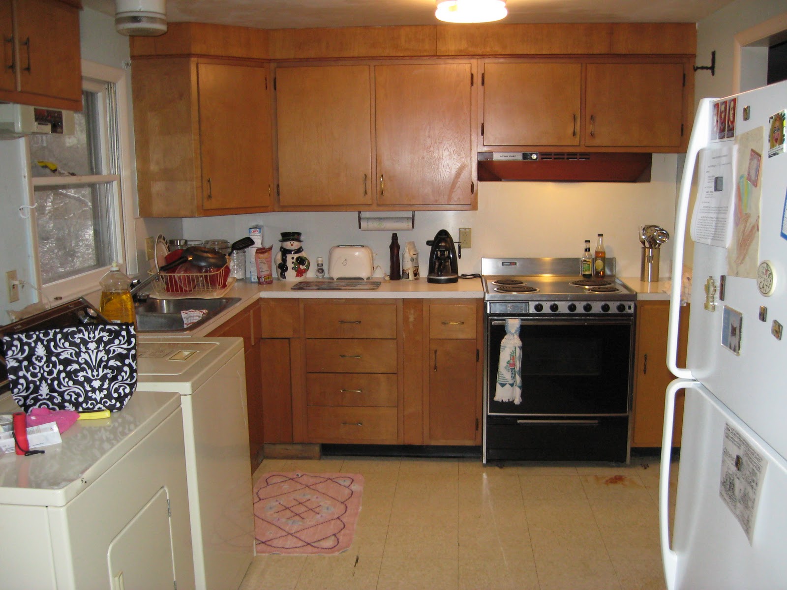 No, it doesn’t look very different. Yes, the washer and dryer are still in the kitchen. We’re trying to stop the leak into the basement so that I can move the machines downstairs. Where the water is leaking in is exactly where the washer and dryer belong, so it will probably be spring before I can move them out and get to work on the kitchen. I have managed to make it my own a little bit. Here’s a shot of my counter: