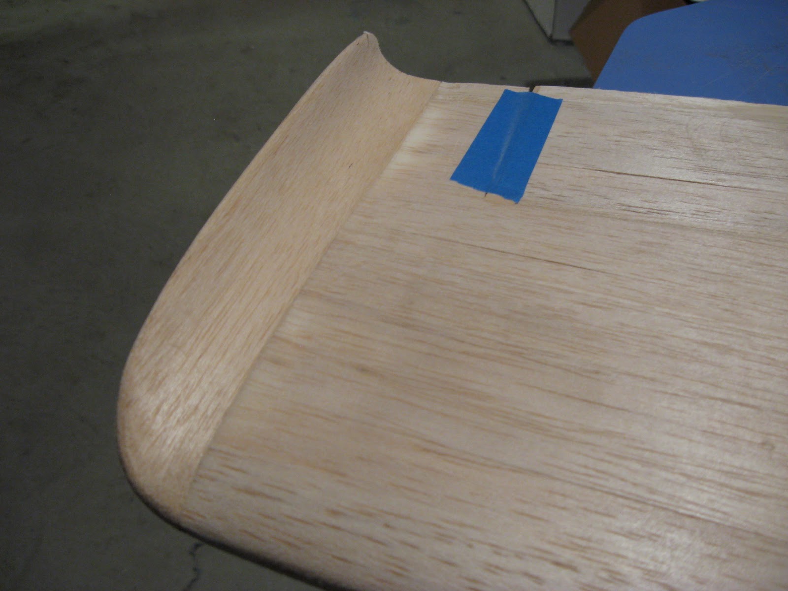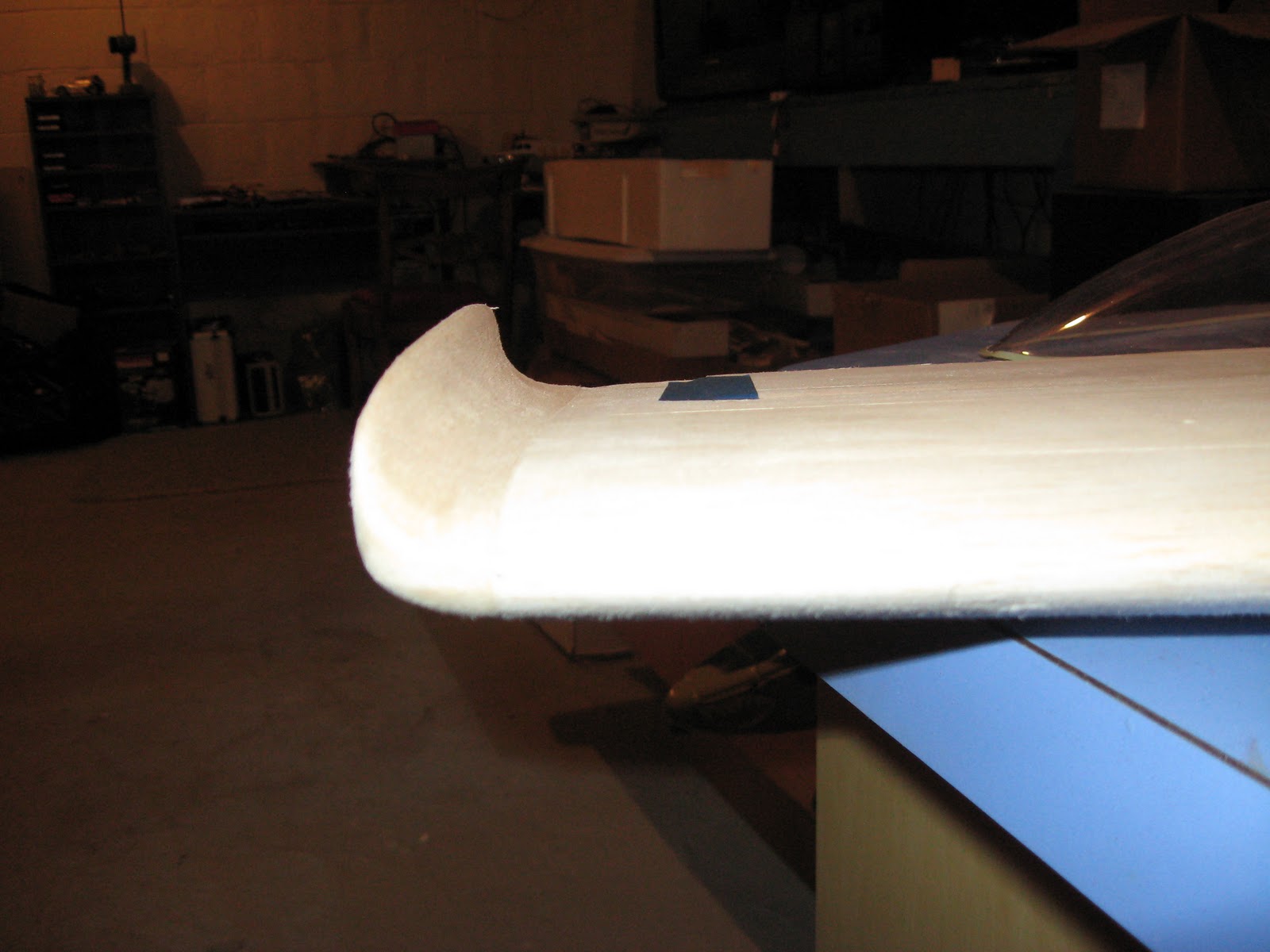 The block of balsa wood was glued onto the end of the wing and then sanded into shape. What shape? This shape: