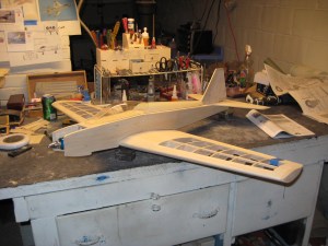 This plane was originally designed to house a gas-powered engine. My sweetness, however, has decided to modify this Kobra to have an electric motor. That means a slight bit of engineering on his part, but that won’t be hard. After all, my sweetie is WAY smarter than most engineers. Believe me, I know. I work with a bunch of them! This is going to be a nice looking plane once it is finished.