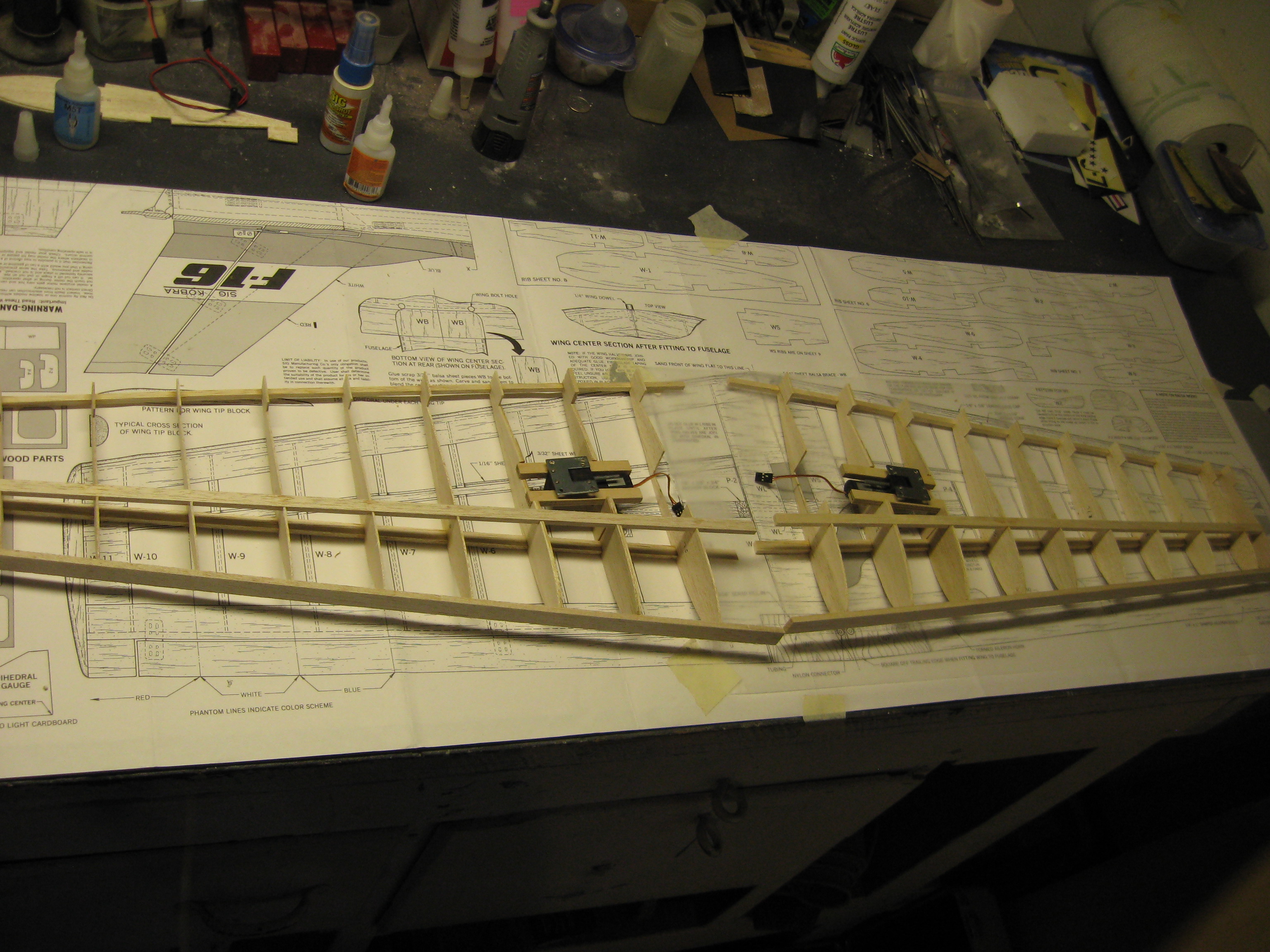 Yep. He had the skeletons put together and he was starting to mark out where he was going to put the landing gear. You can see the retracts here in the picture. A week will give you some decent time to get things done. Are you ready to see what they look like a week later?