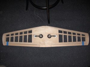I wanted to give you another close up of the wing last week. At this stage it actually reminds me of the toothpick bridge that I had to build in high school for my physics class. Except, the ratio of wood to glue on the Kobra is MUCH higher than my bridge. lol
