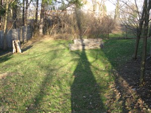 One thing that I do like about the back yard is I’ll have room for a vegetable garden. You can kind of see my grandma’s gardens in the background. My uncle made them for her out of landscaping timbers (which are beginning to rot). My dad and I are going to build bigger ones this spring.
