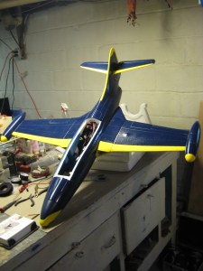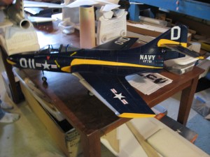 This is the Panther that Jay has had in his basement for a few months. Dave-the-Marine lives about 6 hours away, so he can’t just come over and pick it up. It’s always nice to visit with friends, anyway. Saturday night I listened to Cliff and Dave catch up. Then I enjoyed listening to Jay as he told Dave about some of the things that have happened to various members of the group as they were flying. One of the stories being about Jay’s F-16 that he sliced in half with the power line on Labor Day. lol