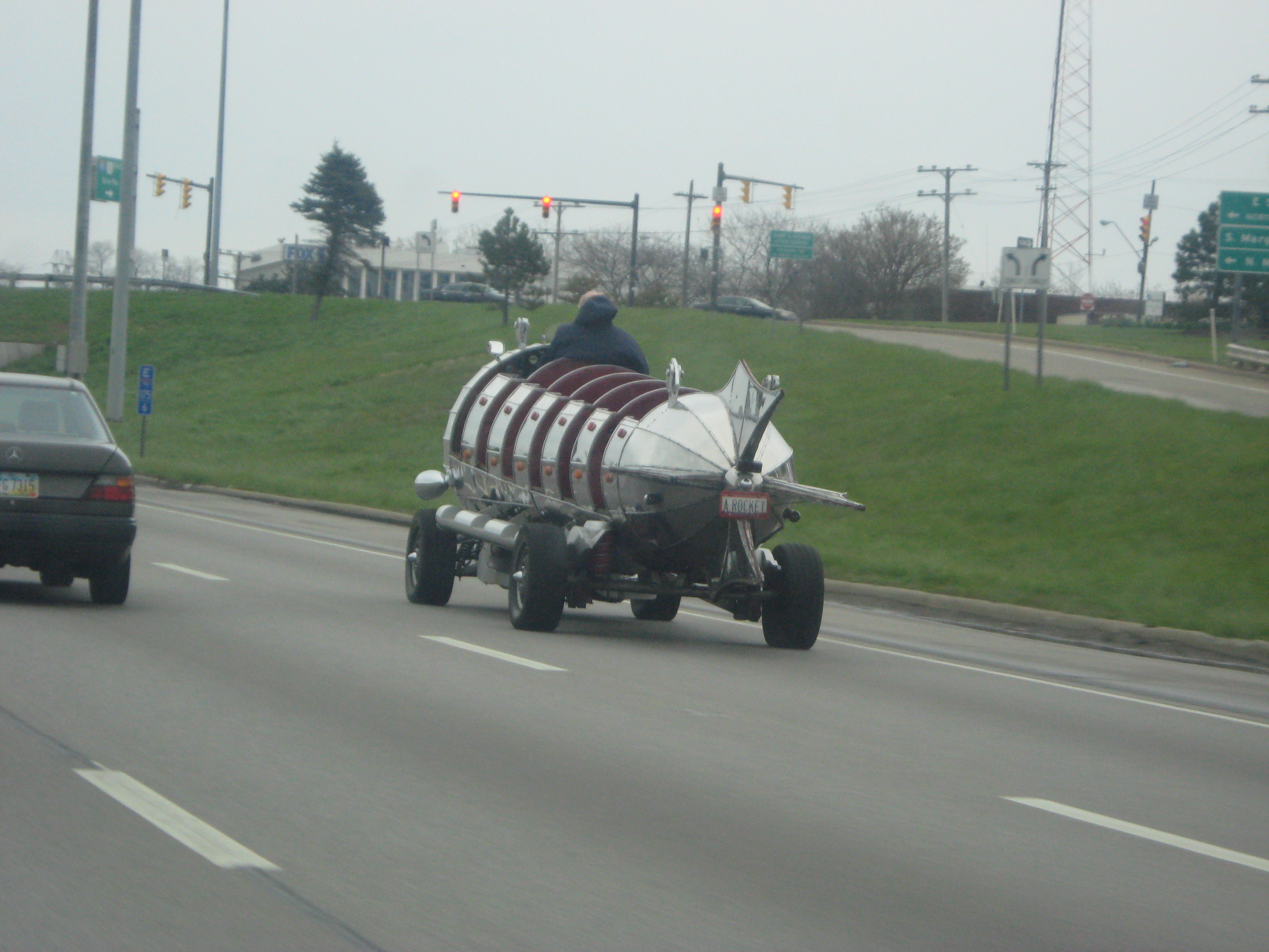 Jay and I were both speechless. What in the world??!! How can that be street legal?? Of course, we forgot we were in Ohio where you can run almost anything on the road as long as it’s licensed. This vehicle certainly had a license plate on the back. We tried to get some closer pictures, but he was going amazingly fast and changing lanes.