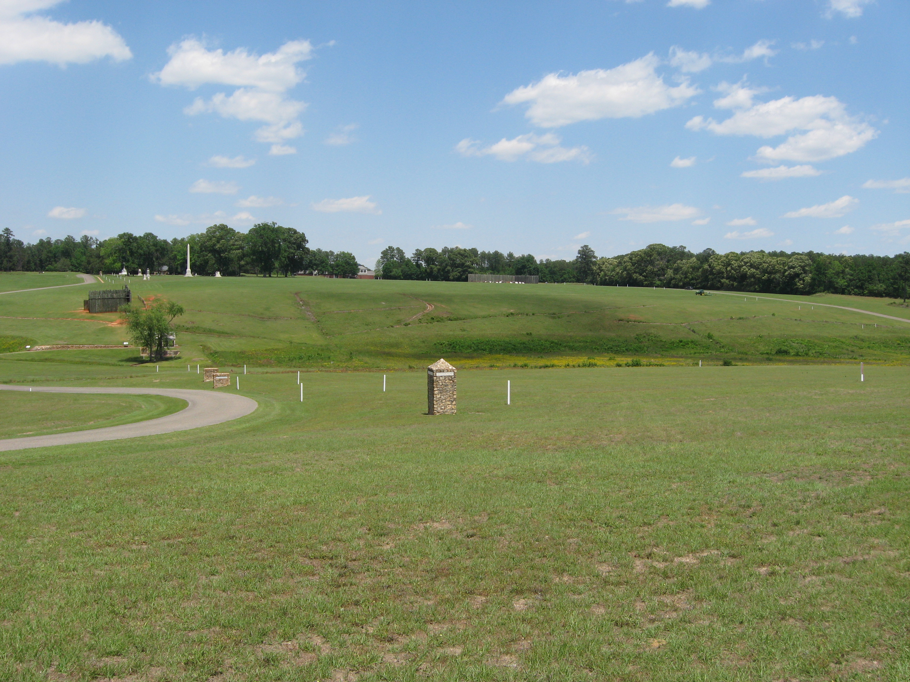 You probably can’t get a very good idea from this picture, but when you’re standing there it doesn’t seem as large. It’s quite hilly, so that has something to do with it, but to stand there and imagine 32,000 men in that area just baffles me. That concrete pillar in the foreground is were a guard’s tower was located in the corner. The outer white posts represent the stockade wall, and the inner white posts represents the ‘deadline’. So, not only did the men have a giant piece of land that was marshy and wet where they couldn’t build shelters, but all around the inside wall of the stockade was 19 feet of space that they weren’t allowed to occupy. If you crossed it the guards were ordered to shoot you dead. Thus, the deadline.