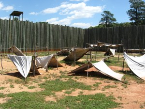 Keep in mind that this prison was located in Georgia where it gets hot, humid, and even hotter. Not to mention the giant insects that wonder the country side looking for their next prey. The occupants of Andersonville would be northern boys who grew up in colder climates and weren’t used to the summer heat of the south. When the prisoners arrived at the stockade they didn’t have any shelter. None. The first guys were able to fashion shelters out of debris left over from the construction of the stockade. As that dwindled, though, the rest of the men had to come up with other means, including the use of blankets, tarps, and even digging holes in the ground to give them a little more relief from the relentless sun.
