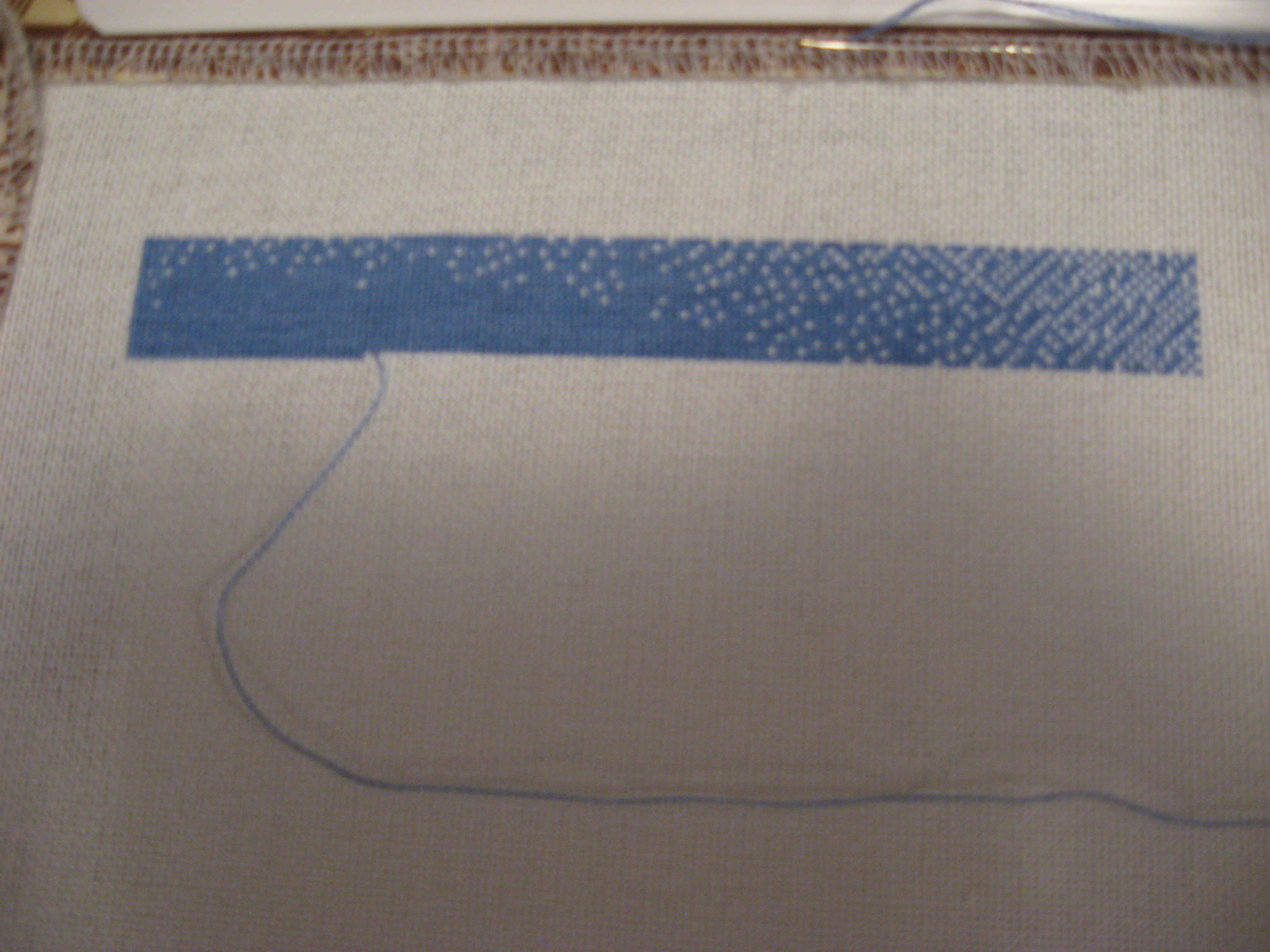 Here is what the sky looked like two weeks ago. Nothing much, just a lot of blue. Maybe next time I will have to put something next to the stitching so that you can see just how tiny it is.