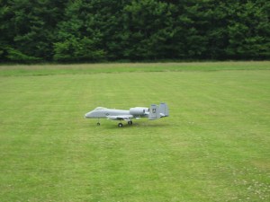 Actually, Jay didn’t think that he was going to try flying the A-10. It would be the first time that the fans were run up outside, so he was just going to taxi around to see how they handled and how the landing gear traveled on the grass. Until we got to this point here in the picture. That’s when Jay thought, “It’s got to go up sometime,” and he mashed his thumb down on the throttle. It picked up speed… quickly eating up the runway…
