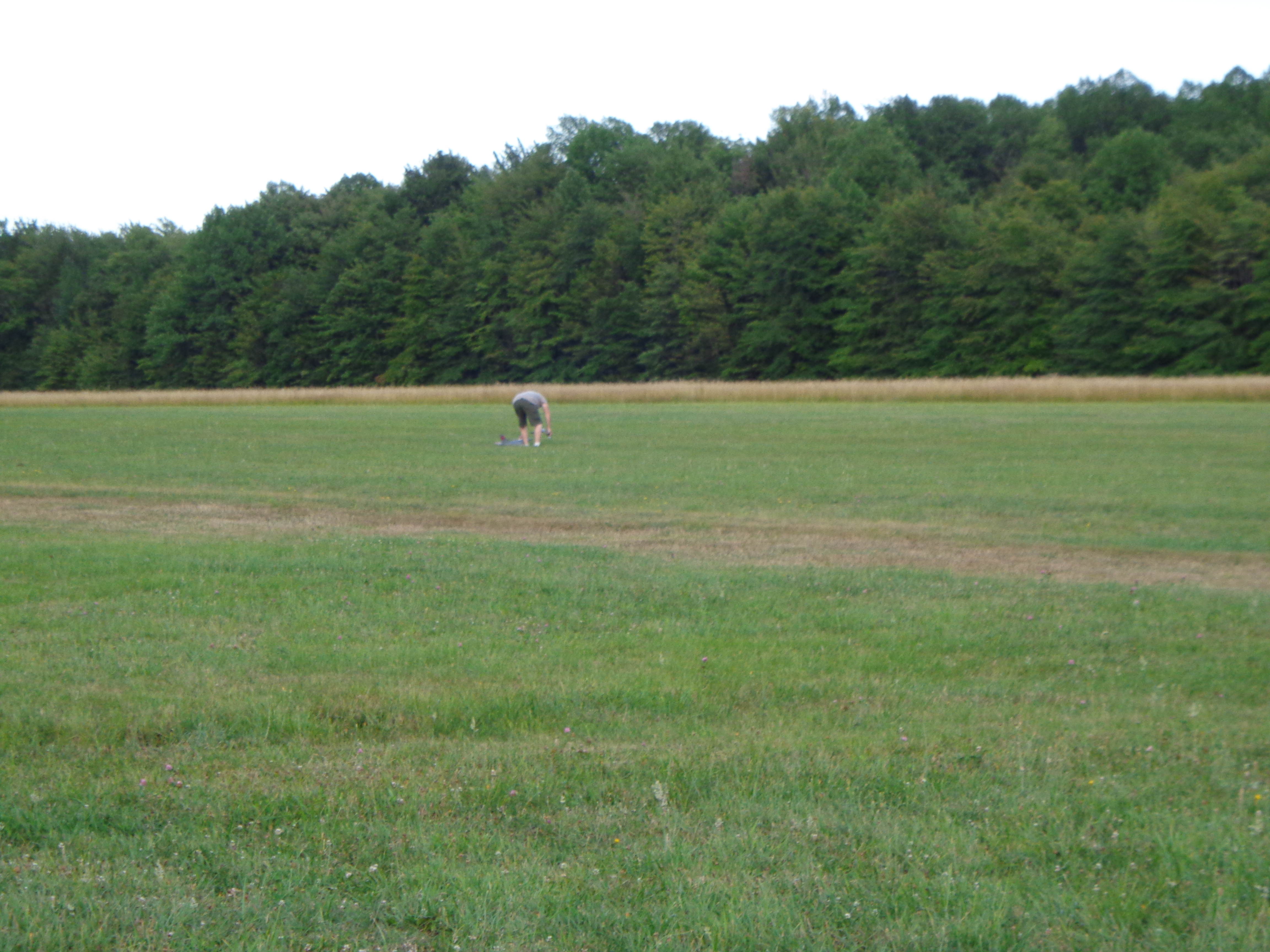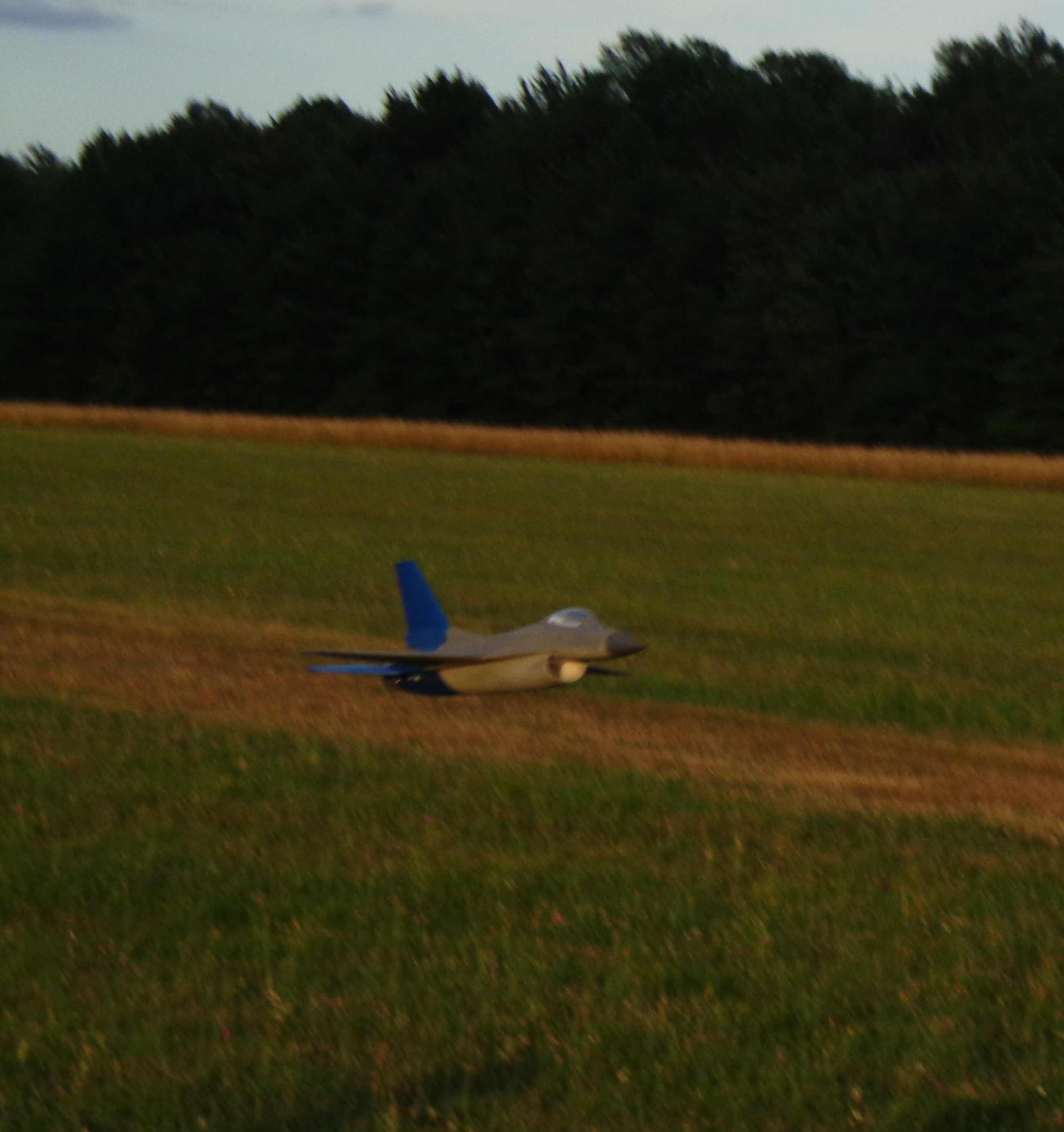 Another guy at the field that night had his foam F-16 that he had purchased from Jay, but that night he dorked it in. Luckily it just needs some epoxy to fix a couple of cracks and a new nose cone. He really lucked out on that one! That’s him in the picture out picking up his jet.