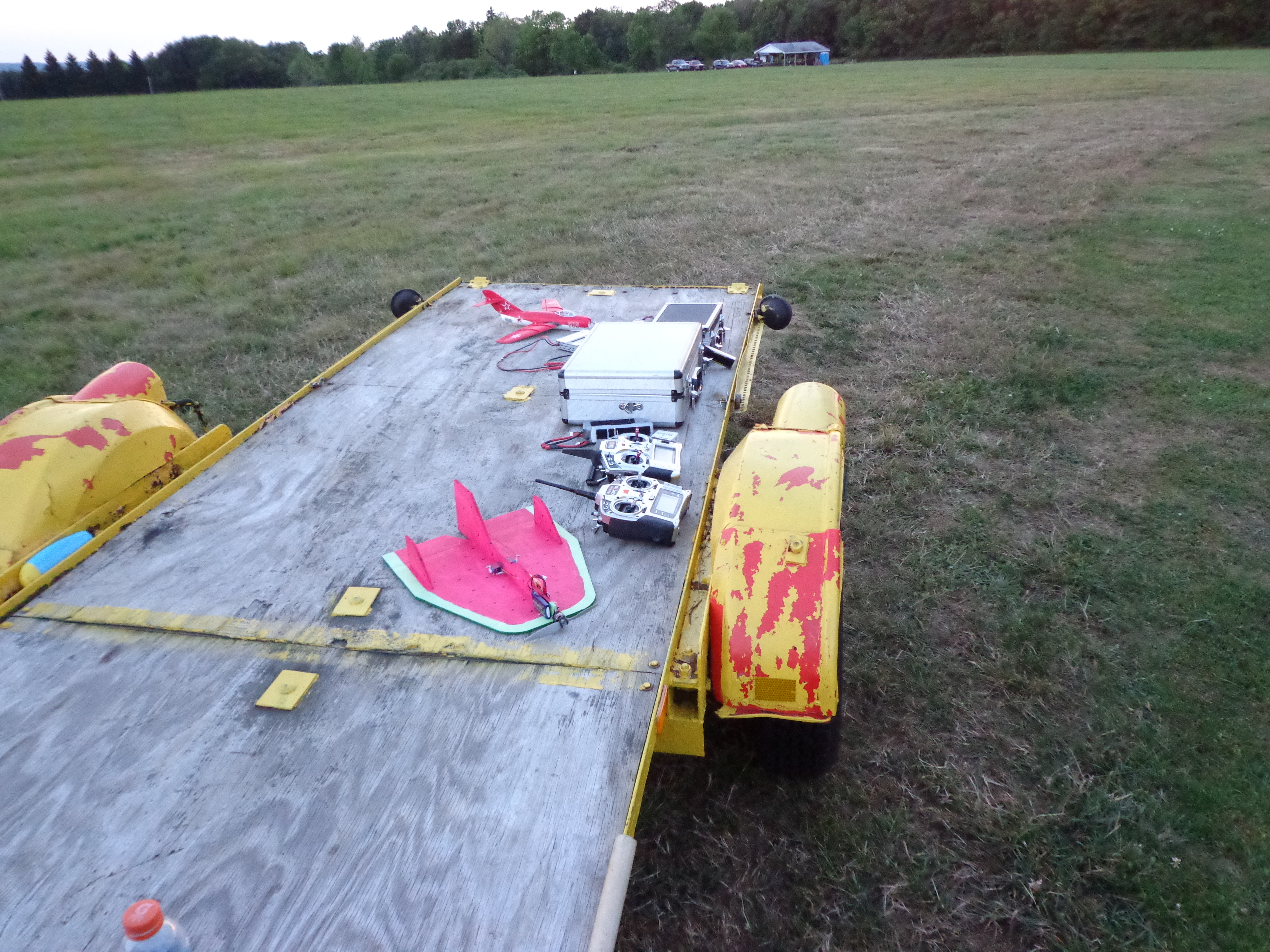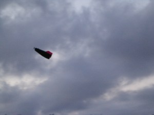 Jay is trying to drum up interest in the combat foamies, so he took my watermelon up to the field to fly. I hadn’t seen it fly yet, so this was exciting for me. And yes, the guys do like my melon. 😉