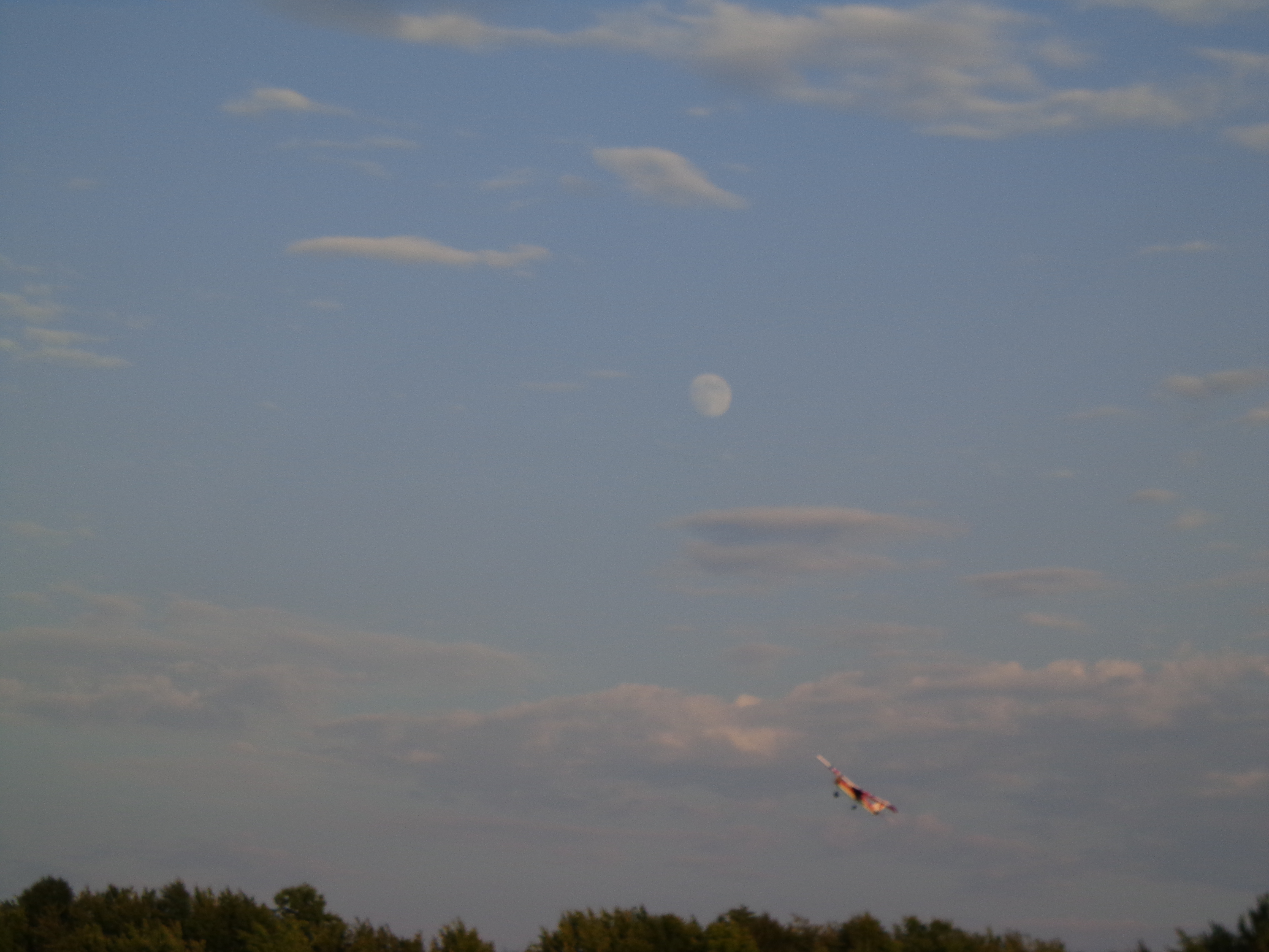 Dusk flying really gives you a great opportunity for some neat pictures. The moon has been out fairly early this past week, so I was able to get a shot of an Alpha as it flew over near the moon. Isn’t that cool?