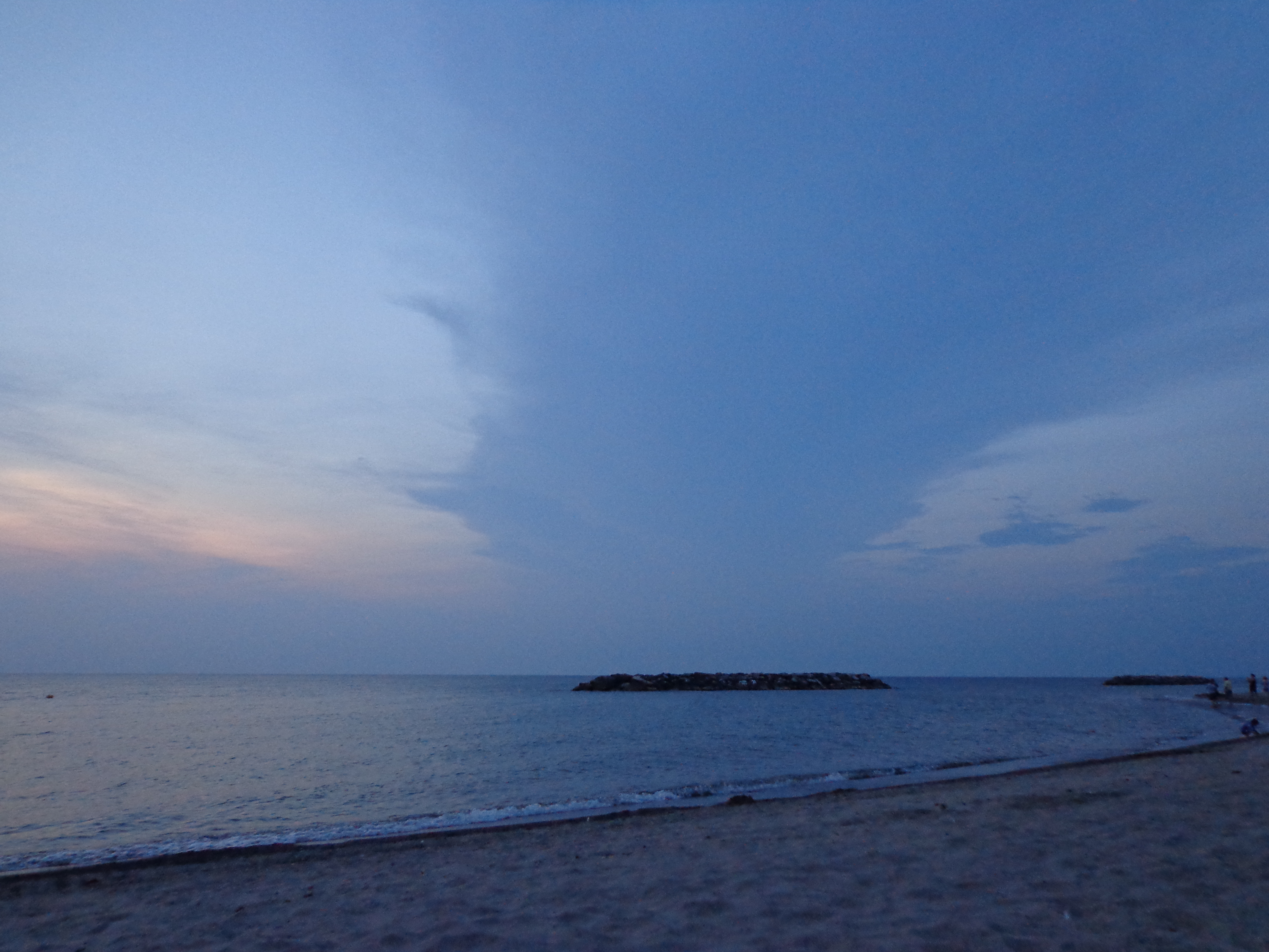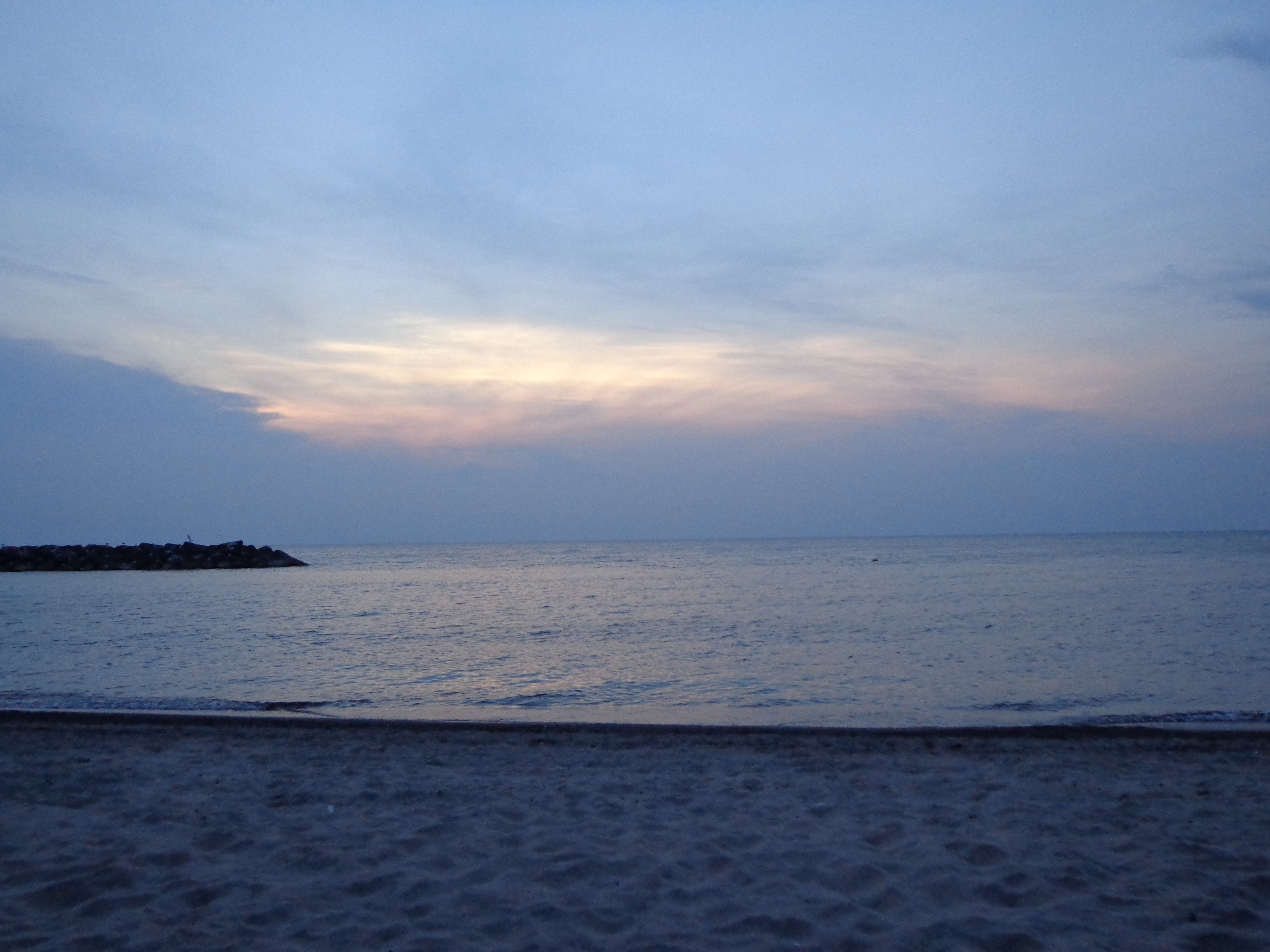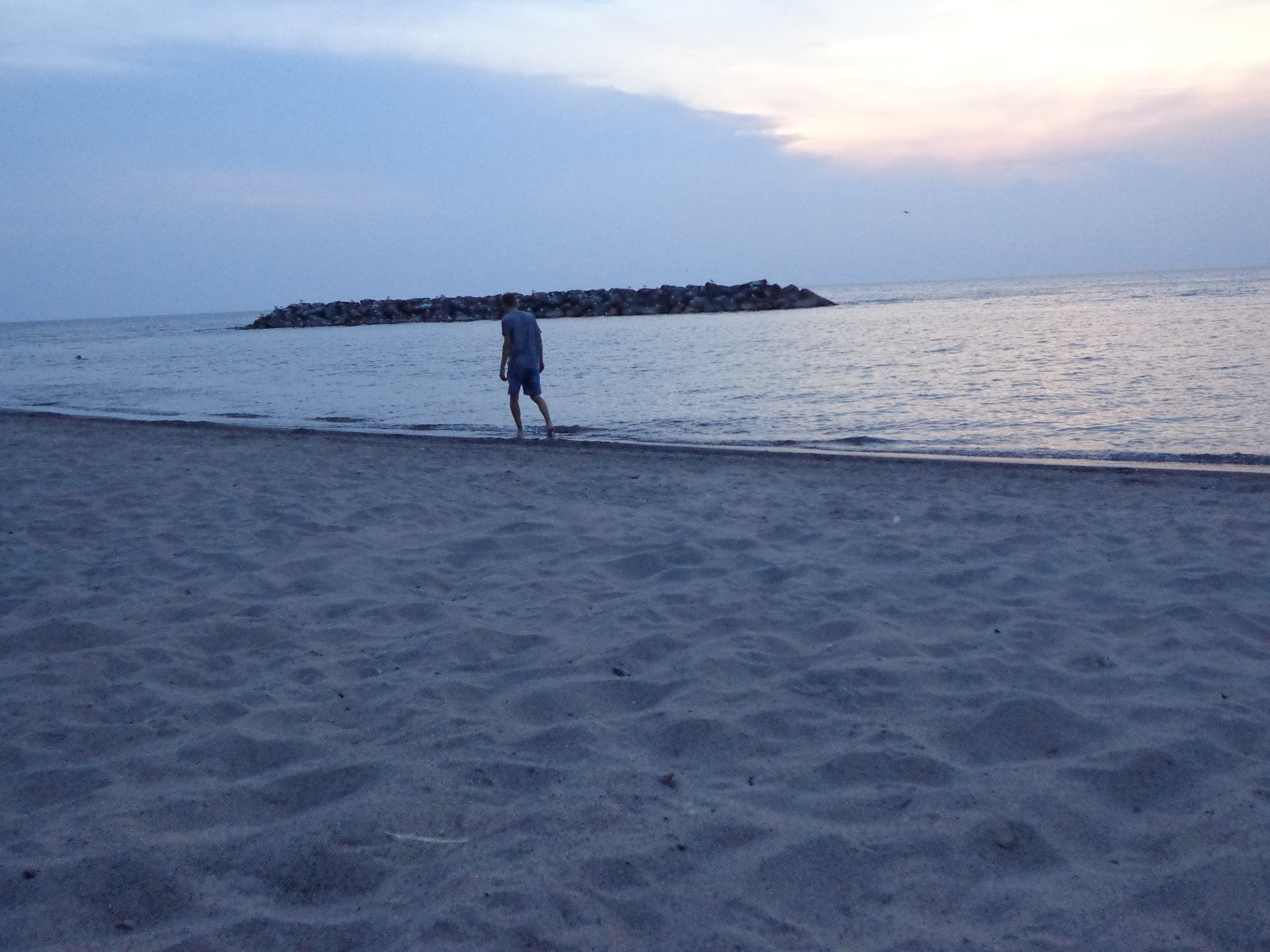 Saturday was very hot and humid, so we stayed inside getting various projects completed. Jay worked on one of his numerous airplanes that were still sitting in their box, and I tore apart a wooden chair and reglued it. Wild and crazy times were definitely had by all! lol That evening, though, he said, “Okay, let’s head out.” I didn’t know where, but I knew that it would be a good time. And it was. We drove around Presque Isle and then enjoyed the sunset on the beach. I was a little disappointed that you couldn’t actually see the sun setting because of the clouds and haze, but it was still very pretty.