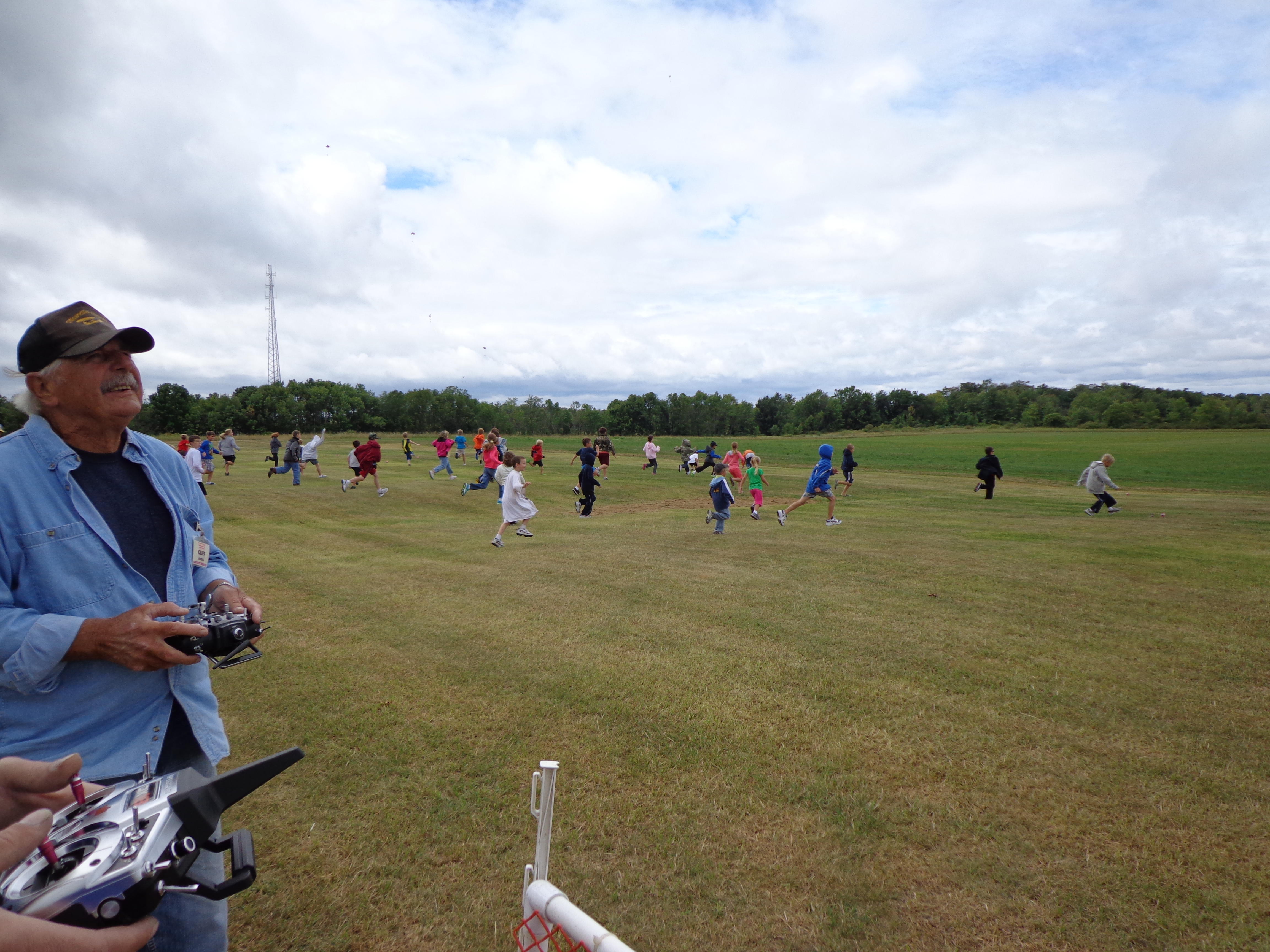 The kids really enjoyed the candy drop. Most of the chutes opened (I think!) and I only saw one group of chutes that were tangled together. A few of the kids really did a good job chasing down the stray parachutes.