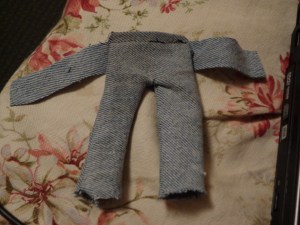 Once you have completely attached the two sides together you want to make sure to trim the excess as close to the seam as possible. Once you have done that you will need to reverse the pants. Pull the legs up through the waist so that you can turn them right side out. This will be a bit difficult and you might break a nail. If you do, just tear the nail off, file it down, and continue with the process. If you break the nail down too far grab your bottle of CA glue to do a temporary fix until you have time to repair it properly.