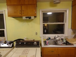 I knew that there were a couple holes in the drywall so I decided that I should probably patch them up. I had been debating about whether I wanted to paint the kitchen before moving or not. It really needed it, but who knows if the people who buy this place would like the same color as I did?