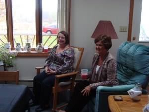 In this picture I remember that the lady in the back is Renee, and I believe that the one sitting on the left is Theresa. And I’m afraid that I can’t recall what the woman in the lovely shade of blue calls herself.