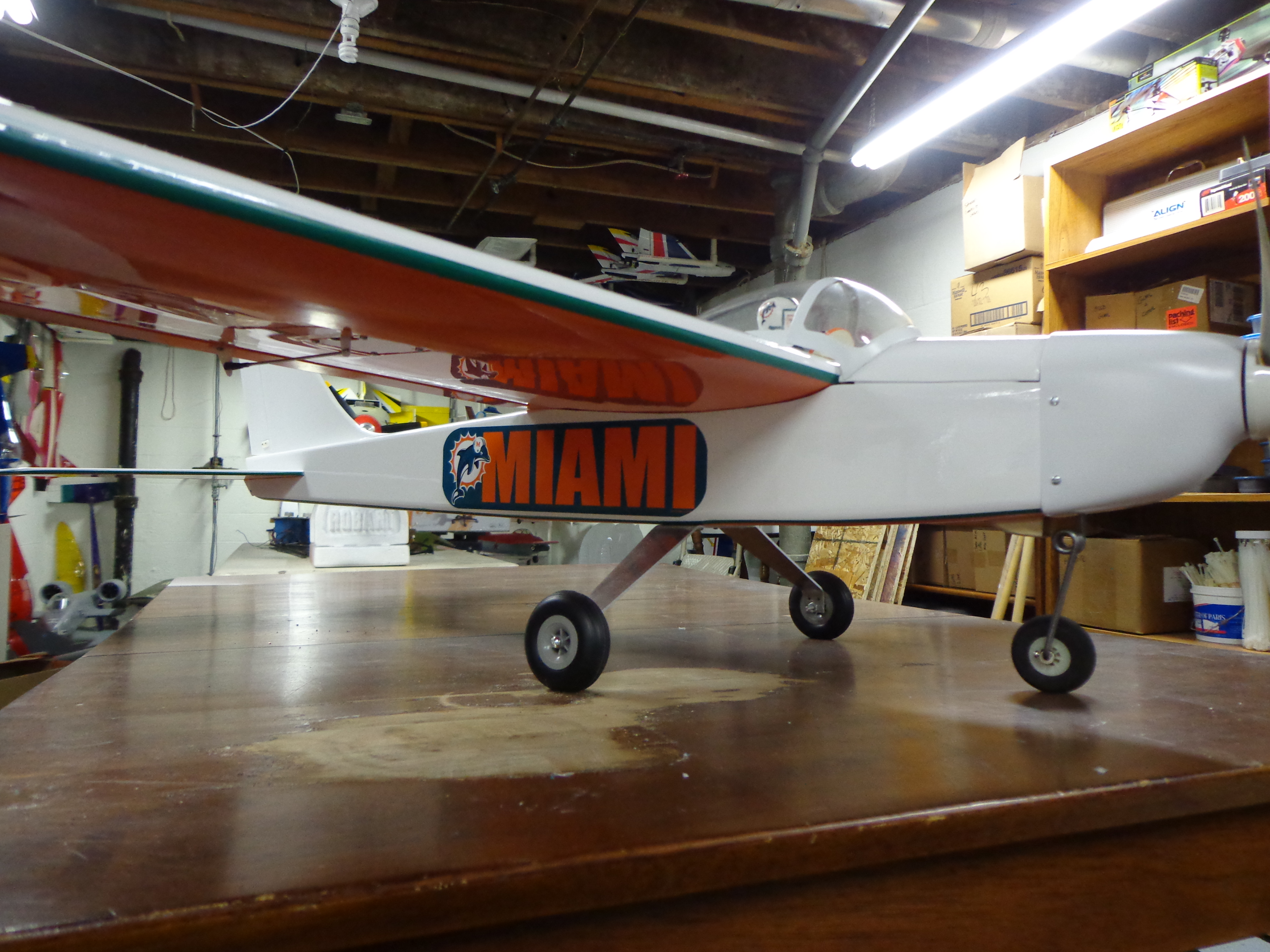 I realize that it’s been a while since I last posted pictures of my beautiful Kavalier. There has been one change in the theme of the plane, though, since the last time I posted. Shortly after I posted about doing it in Miami Dolphins colors and honoring Dan Marino I learned that he had just admitted to having an affair and fathering a child… seven years ago. Call me silly, but I have a huge problem with admiring somebody with less than admirable morals. I wouldn’t condone cheating by anybody, and especially not a person who is looked up to as a role model. It doesn’t matter to me that he’s a rich ex-athlete. Morals shouldn’t be shed based on dollar signs. Needless to say, there will no longer be a ’13’ placed on this plane. I still wanted to do it in the Miami colors, but it will represent the team in general. So yes, this plane will probably suck at flying. 😉