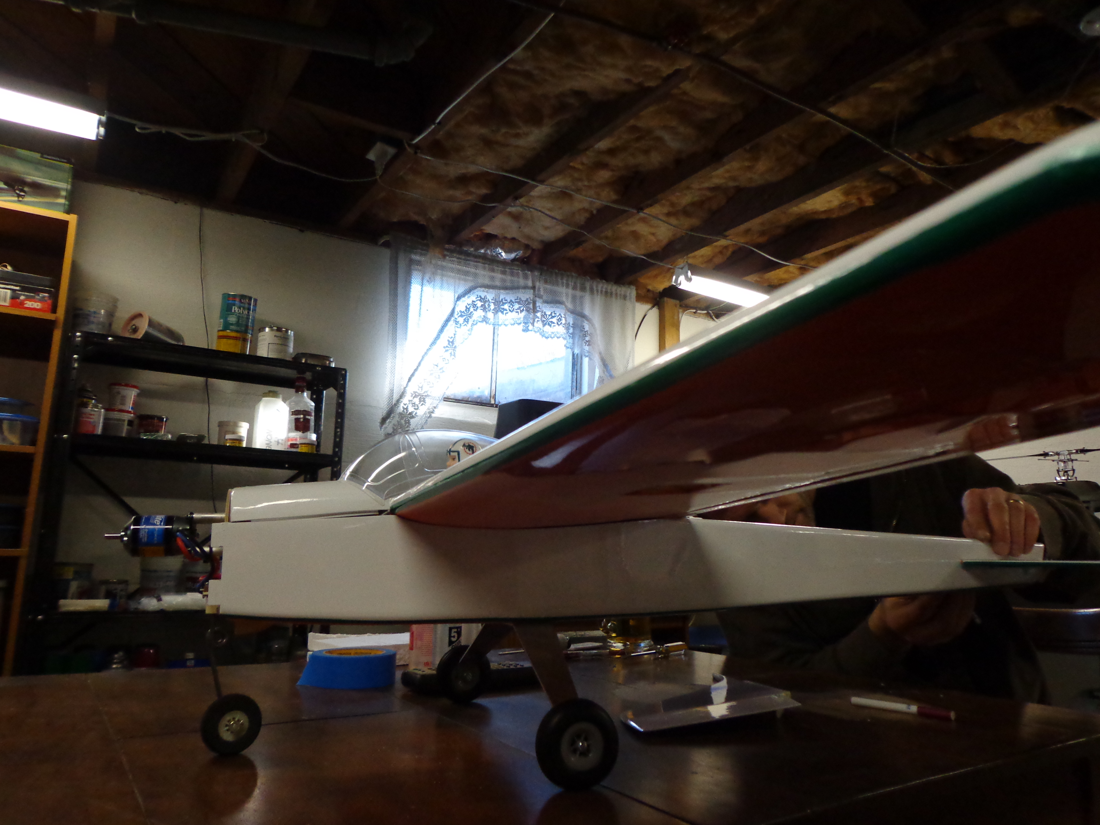 Jay covered the plane with the colors I had chosen. You can see the underside of my wing, in all of its orange glory. There’s also a green stripe along the leading edge, but it’s difficult to see in this picture.