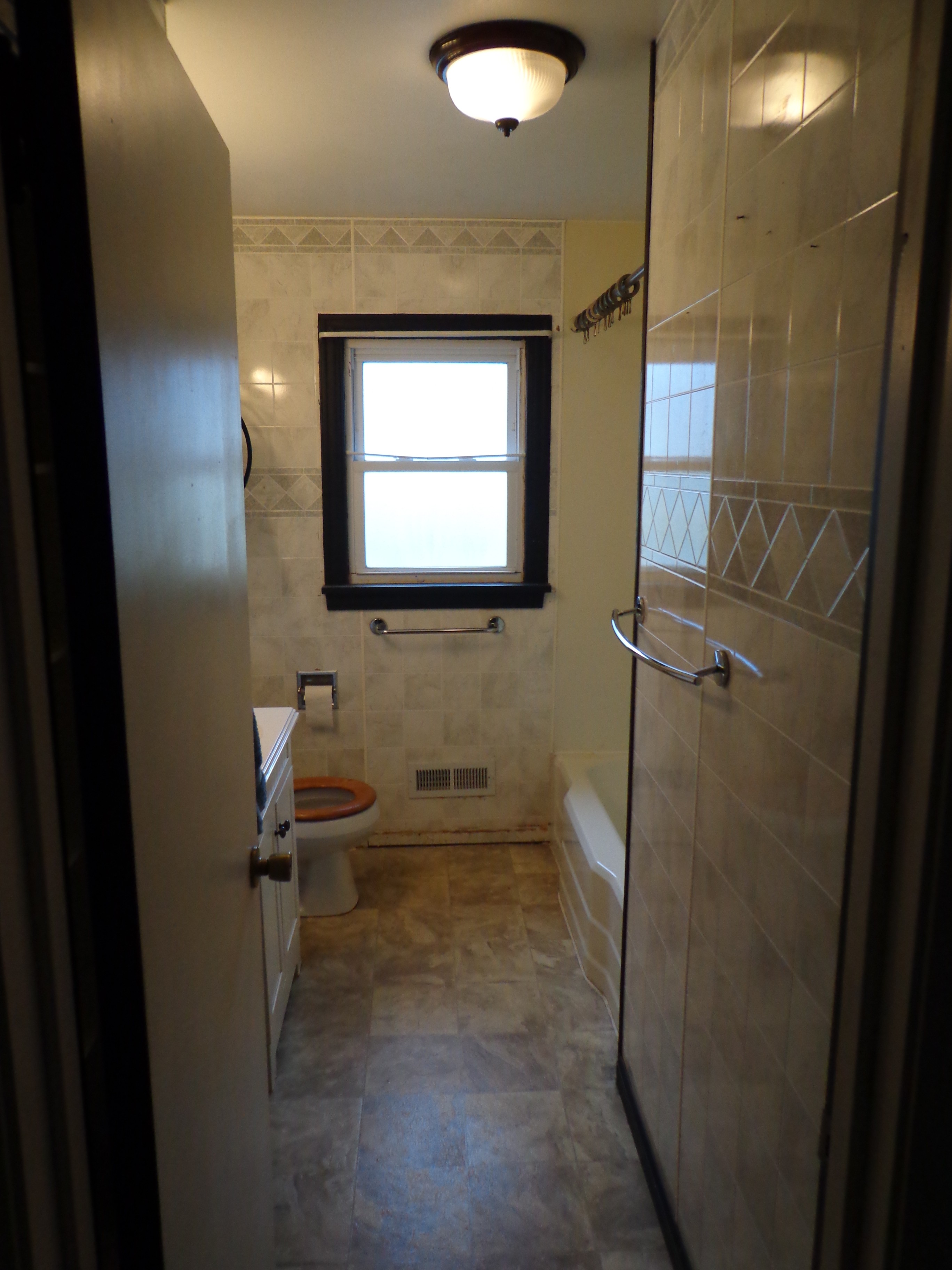 This is our bathroom. This is actually the only bathroom that we have in the house. Many people have looked at us like we are crazy when we tell them this, but it works for us. At least, I thought it did. When you decide to remodel the only bathroom in your house that’s when you think that maybe another half bath would be nice.