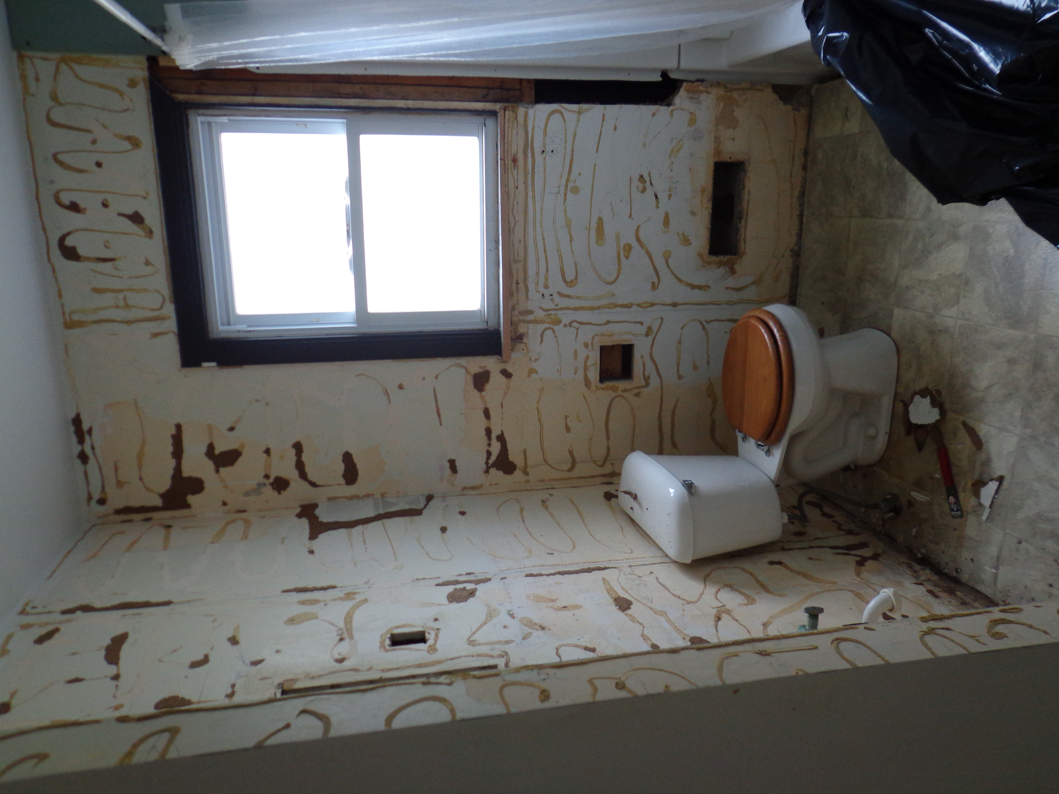 I took a few days off of work, and with my dad’s help, Jay and I took out the old cast iron tub and the brittle surround. Many people told us we wouldn’t be able to get the tub out in once piece, but as you can see we managed to do that just fine. It went outside to the curb and was only out there for about 24 hours before somebody stopped and took it away.