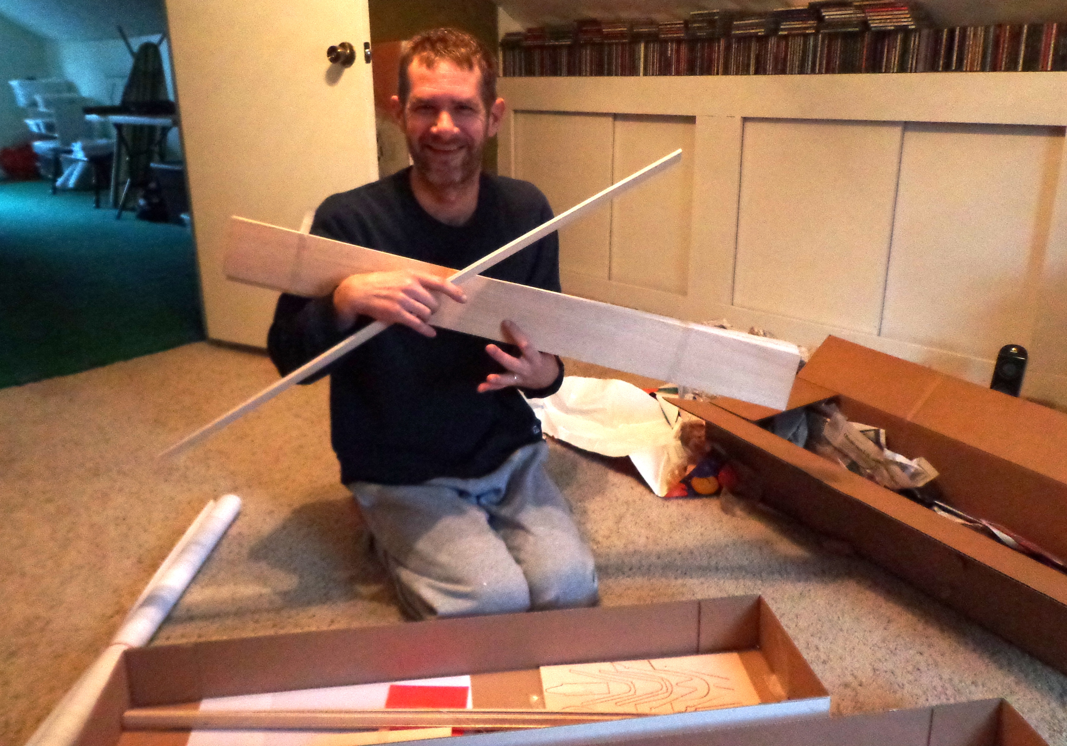 Jay was VERY happy. Most jets arrive as ARF’s (Almost Ready to Fly) so that all you have to do is glue together a few parts, toss your power system in it, a receiver, and a few servos before you take it out flying. This is an actual kit where he will have to build the airframe out of balsa, sheet it and fiberglass it. He really enjoys having these kits to build over the winter when he can’t be out flying.