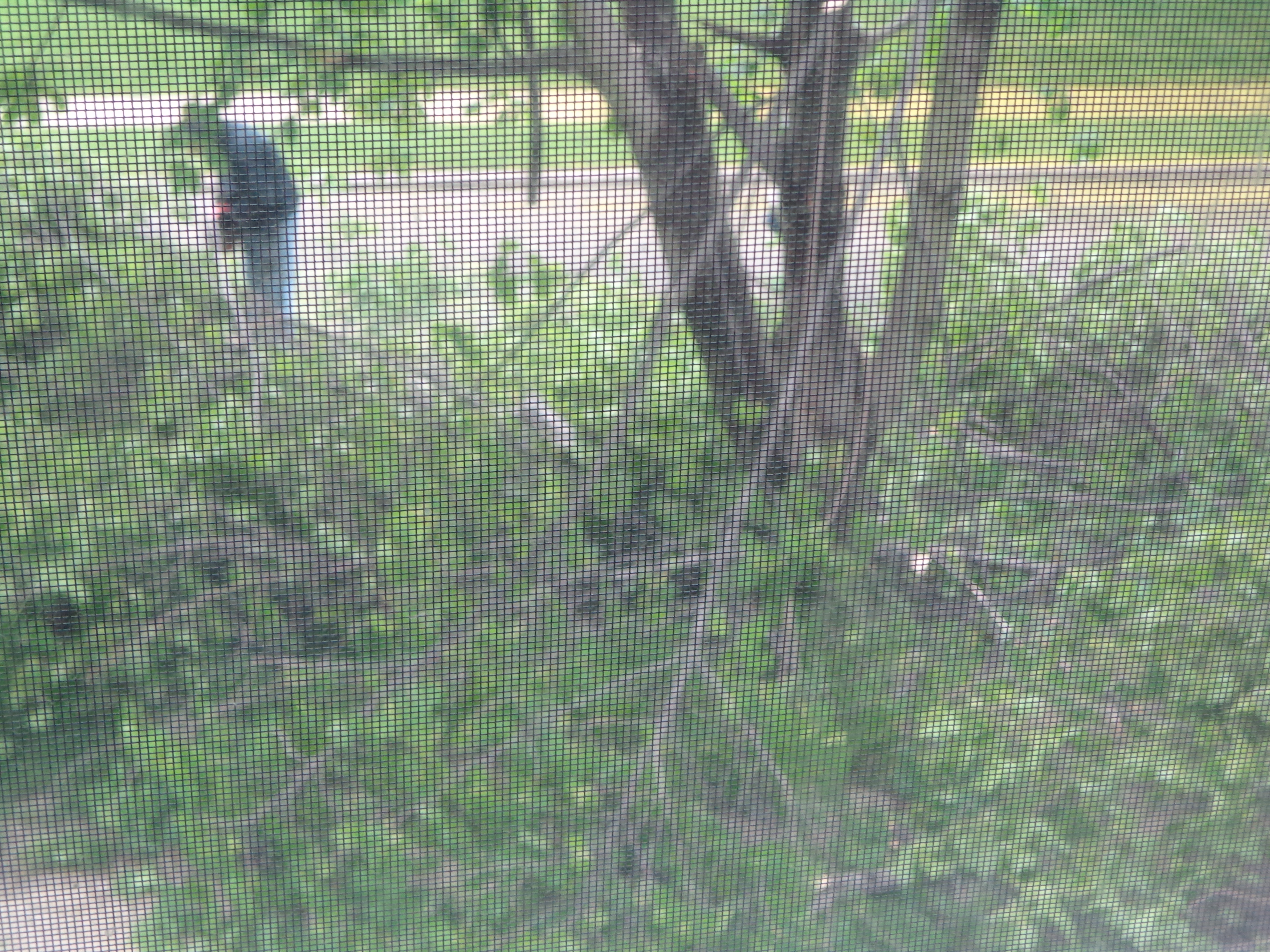 This is my back deck. You can see in the corner of the yard there is a LARGE maple tree. Have you ever been around a maple tree? They are dirty, nasty, and also try to kill me. They covered our cars with pollen and tree gunk, plus they enjoyed throwing their tree mess all over my back deck.