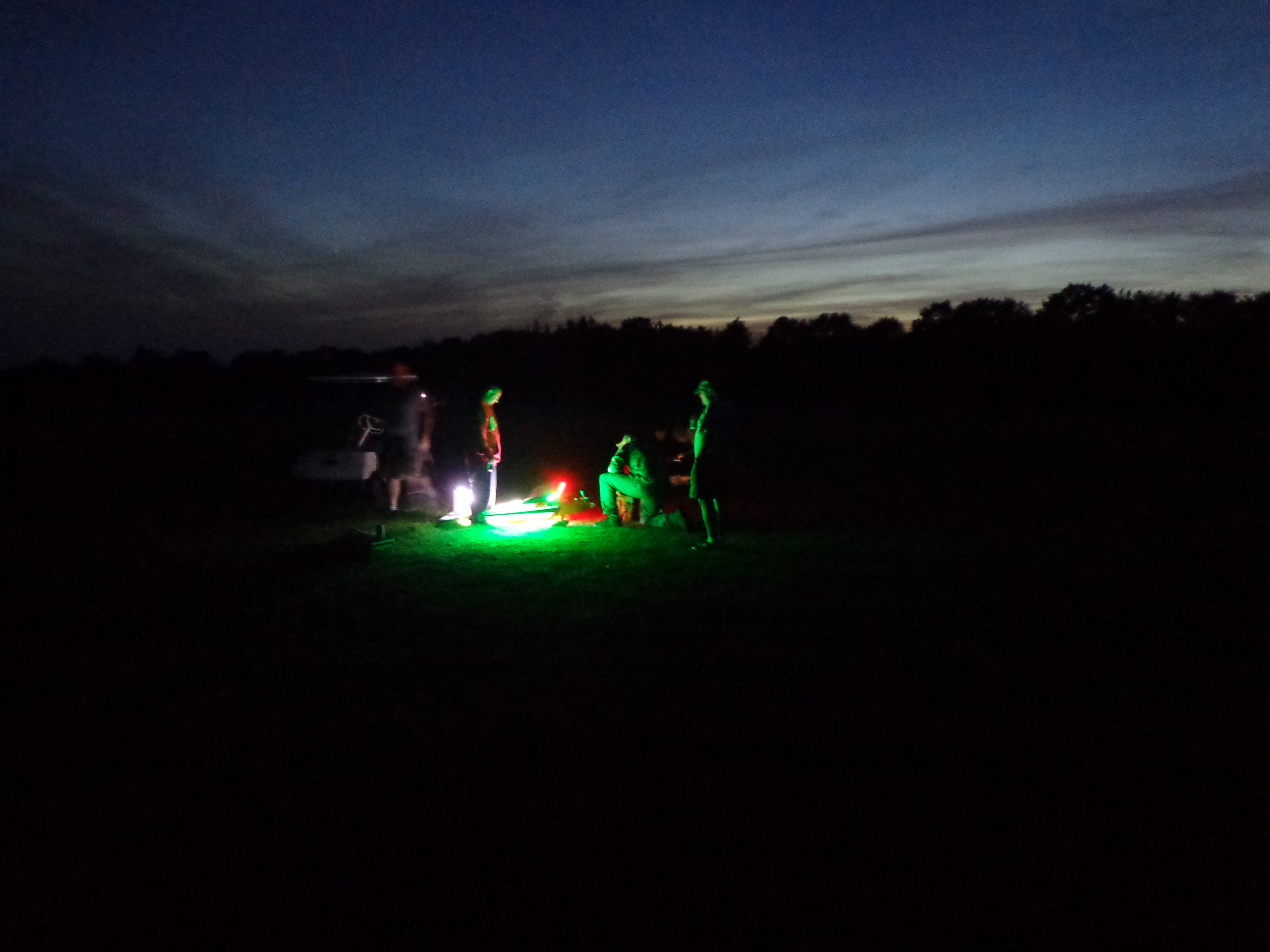 Here we go… one of the decent pictures. Jay was hovering the Rascal and then slipping into a tail slide. The two white ‘feet’ are the white LED’s that wrap around the rudder. Isn’t it neat?! You really should see it in person. Especially when Jay is flying it around and turning the lights on and off. One of the other guys started freaking out and it wasn’t even his plane!