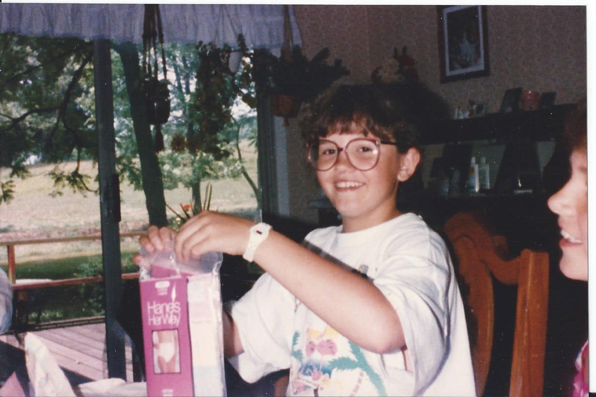 My Giant GlassesThat was back around 1990 when fashion frames were very popular. Yes, I used to curl my bangs, too. Oh, and this was my birthday so as you can see I was really in HIGH fashion with my giant underwear that I received as a gift! lol  Jay is one LUCKY man! 😉