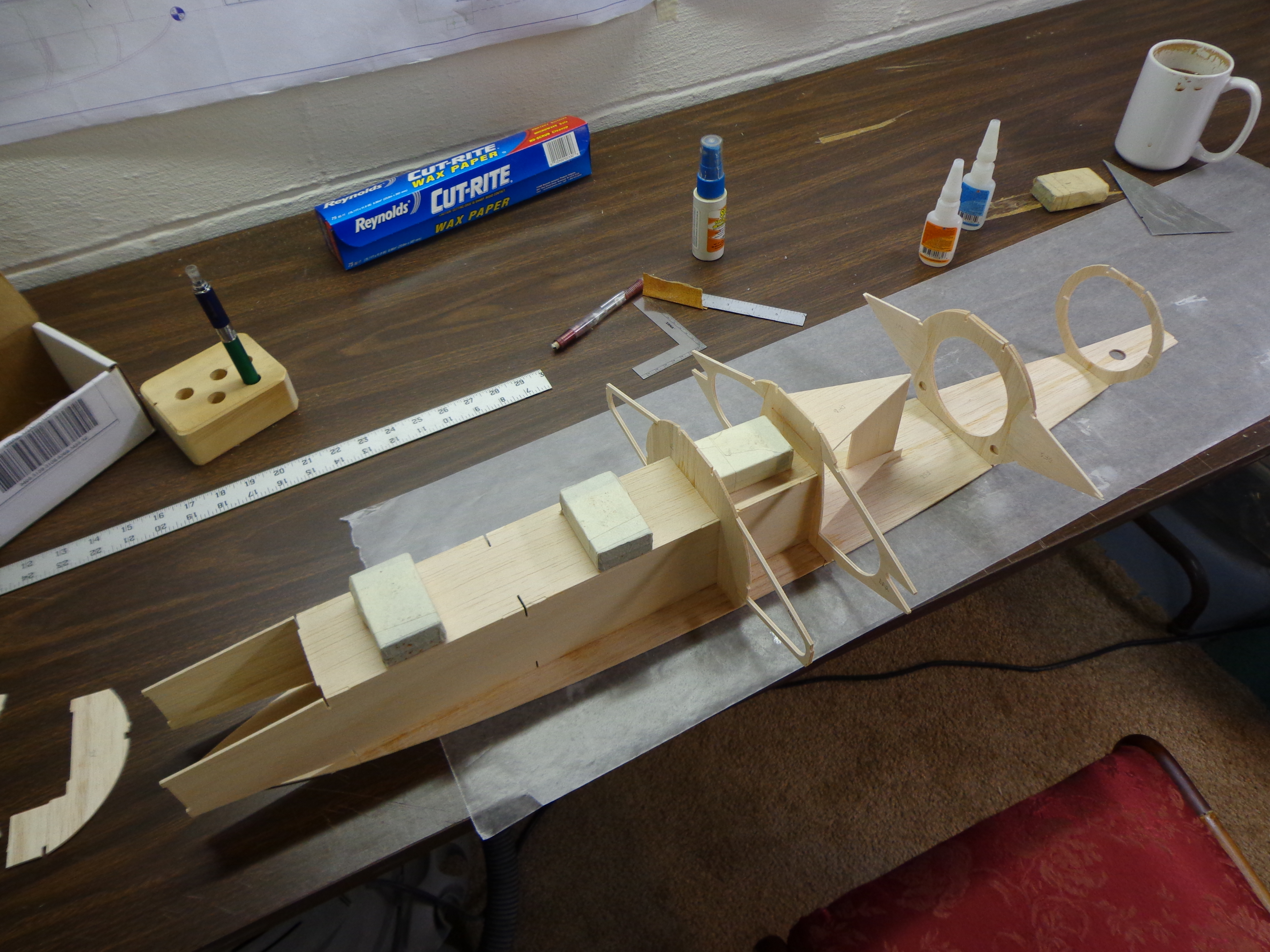 As you can see, Jay doesn’t waste any time. The fuselage has begun and the ribs are being installed.