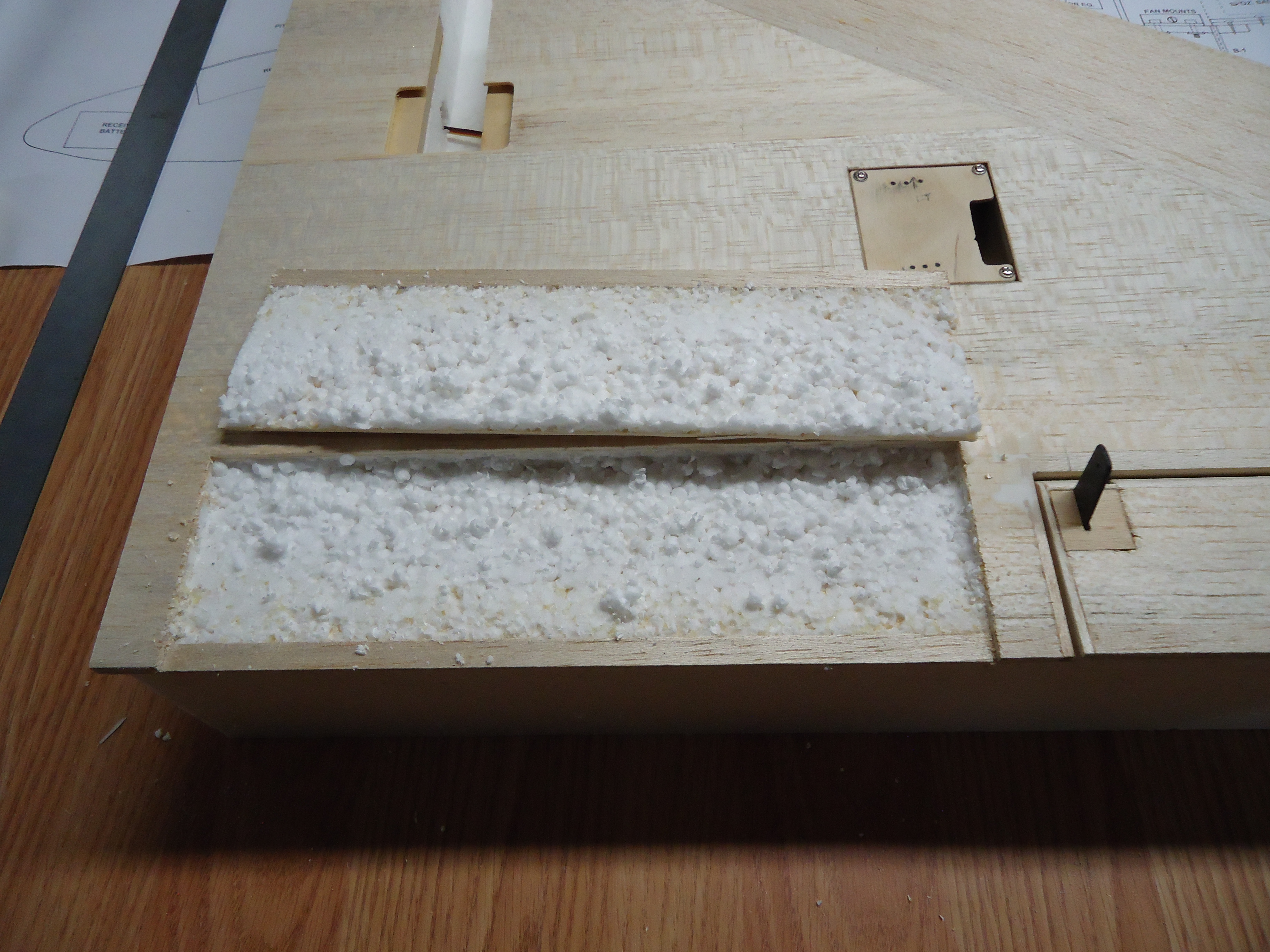 Use extra pieces of balsa that you have sitting around to line the sides of the cavity where the flap will rest when it’s not deployed.