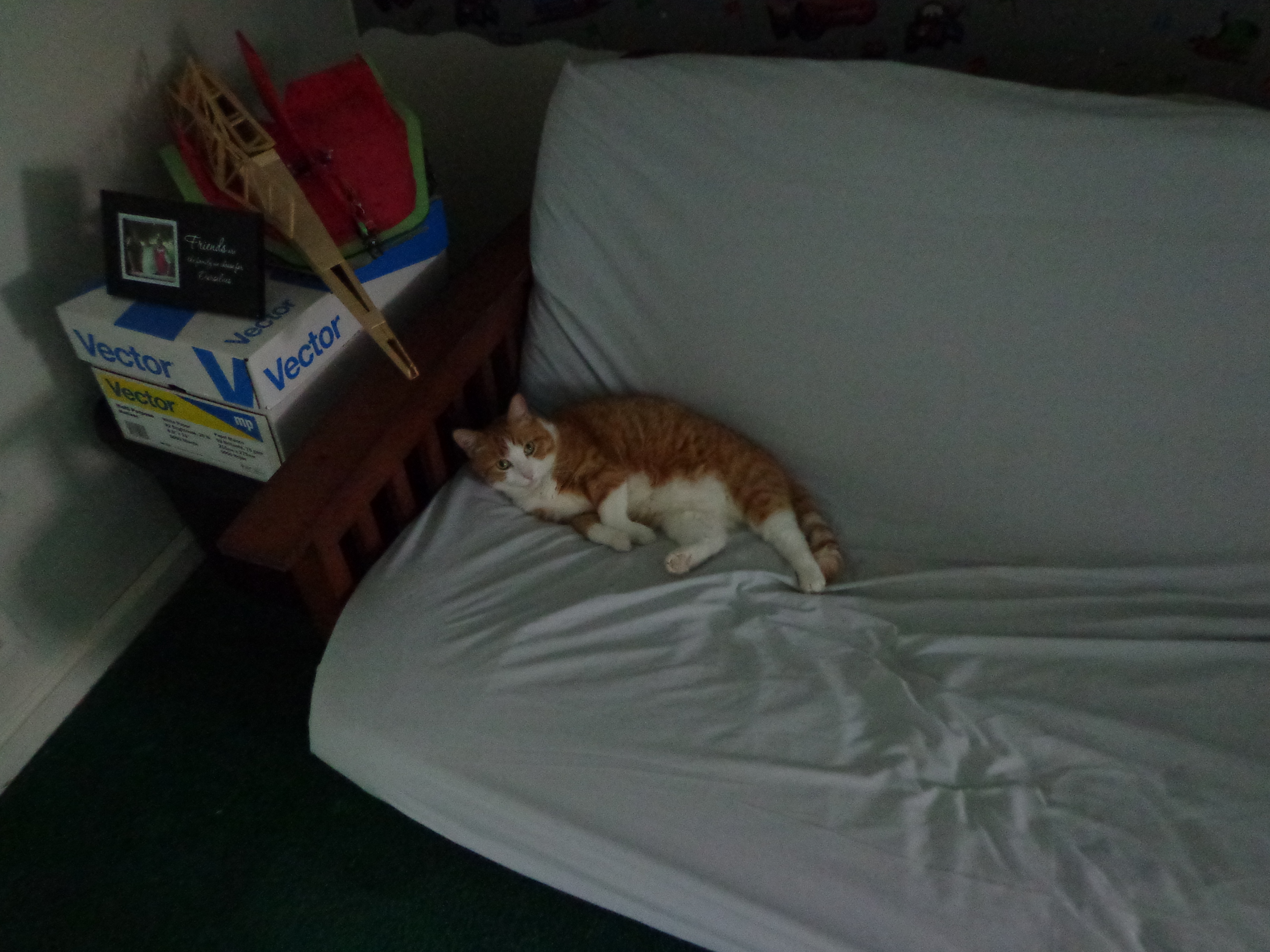 She tried the futon, but it’s a bit lumpy and not anywhere near a heat register.