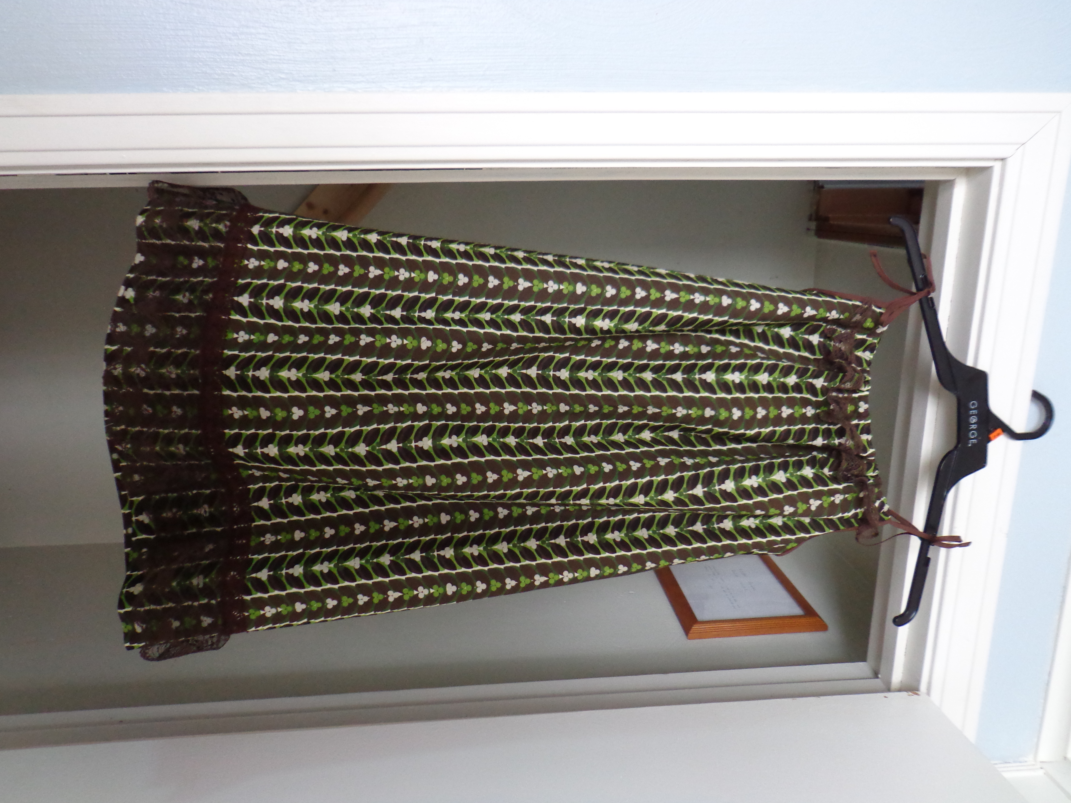 I had purchased some really wide brown lace for this material. I decided to use it at the hem. I think that it gave an interesting look to it. I have more of this material and hope to brighten the next dress up a bit with different trim.