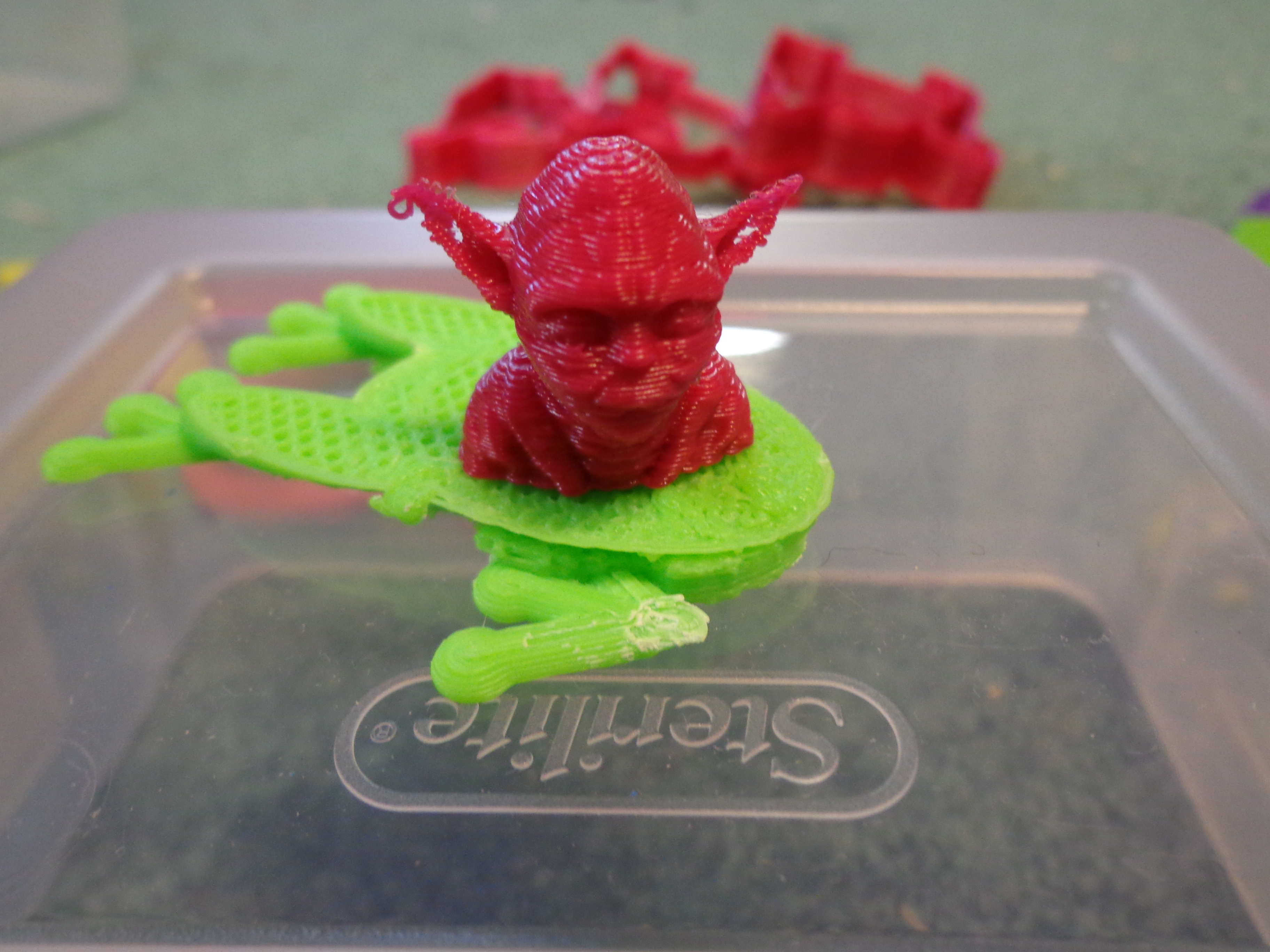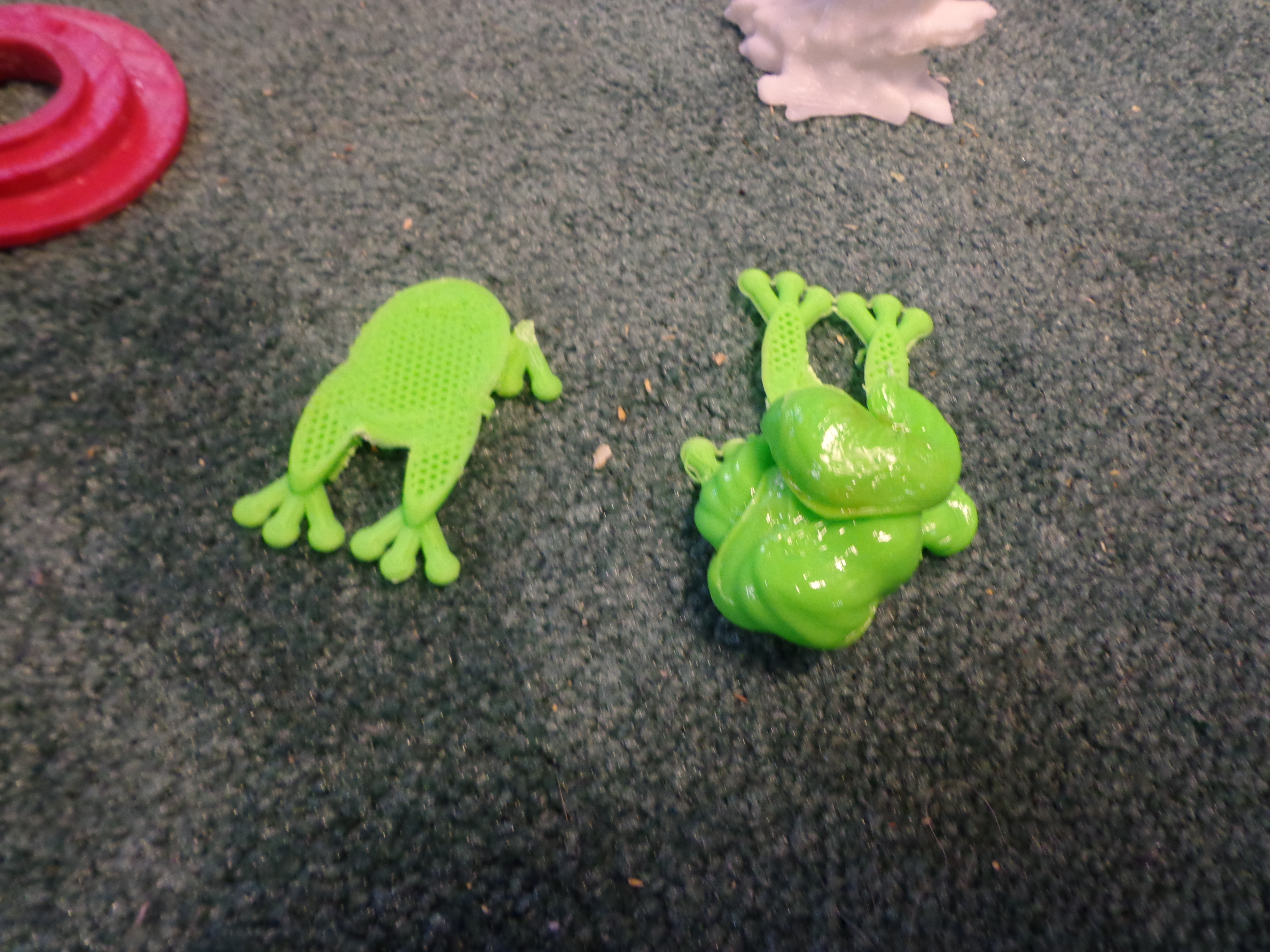 Something happened while trying to print the frog. Jay had walked away from the machine and came back to what looks like a melted frog. Frog legs anybody??
