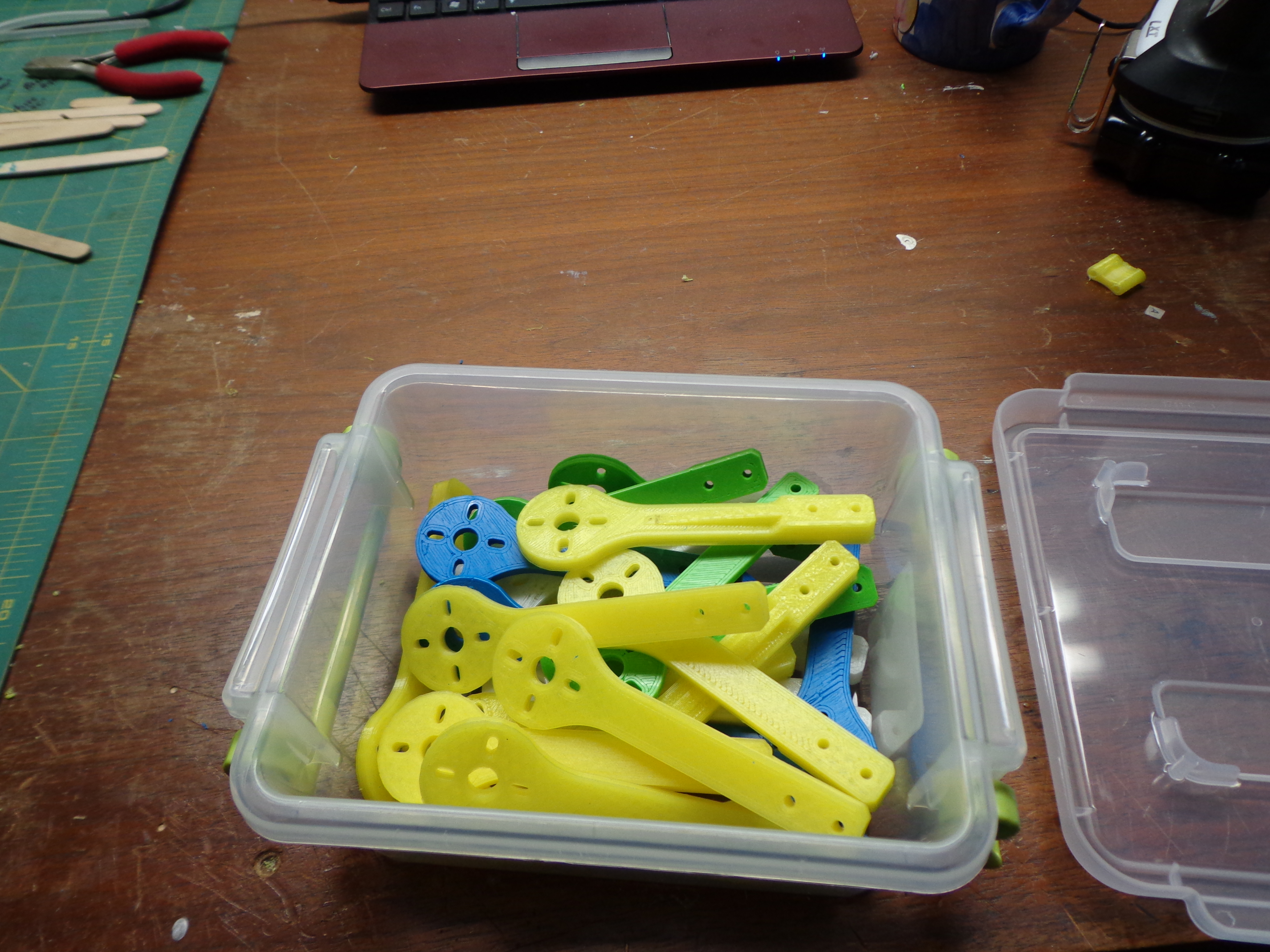 In this picture Jay is printing out four quad arms (of his own design) and what I think are four spacers.