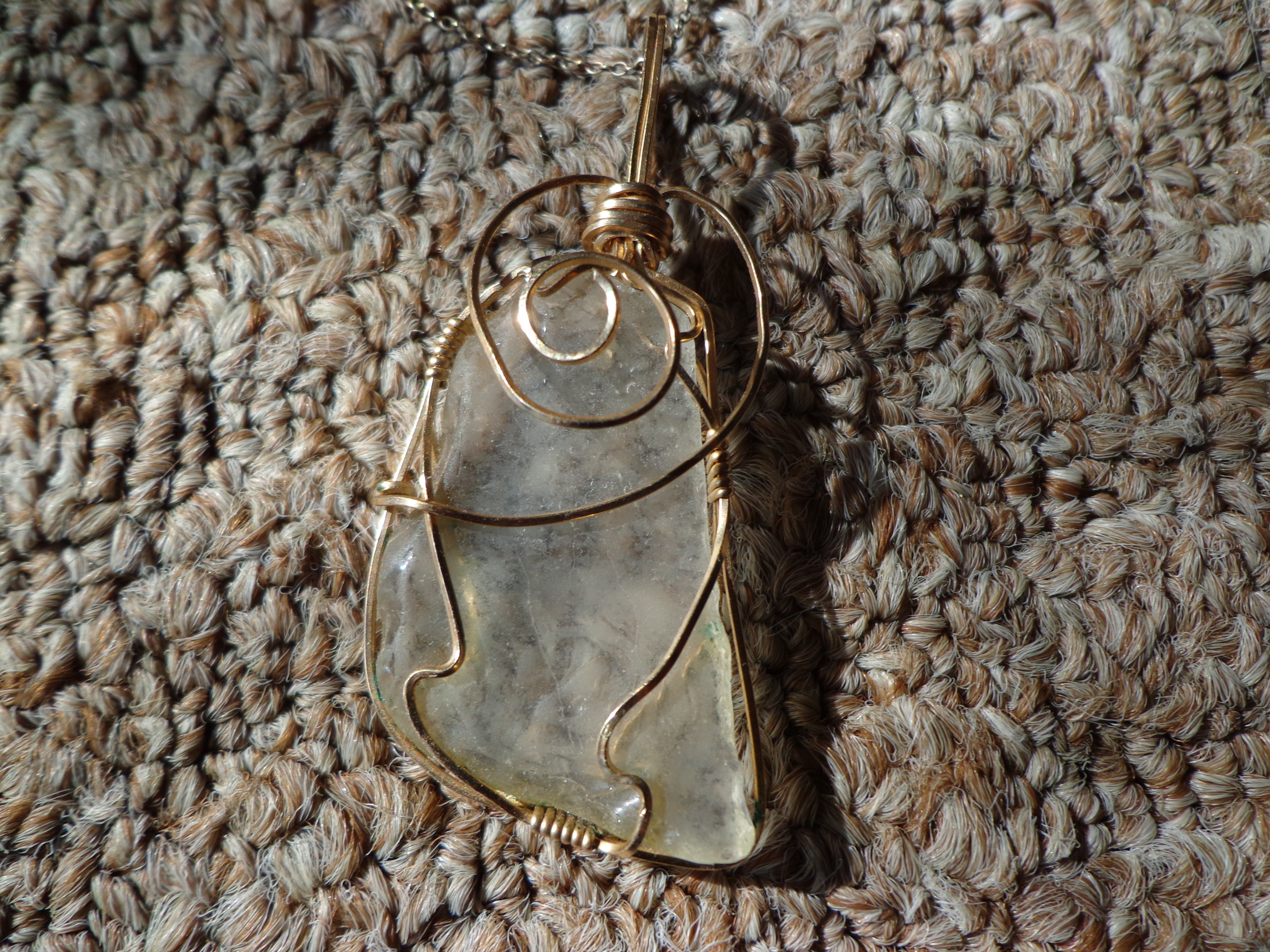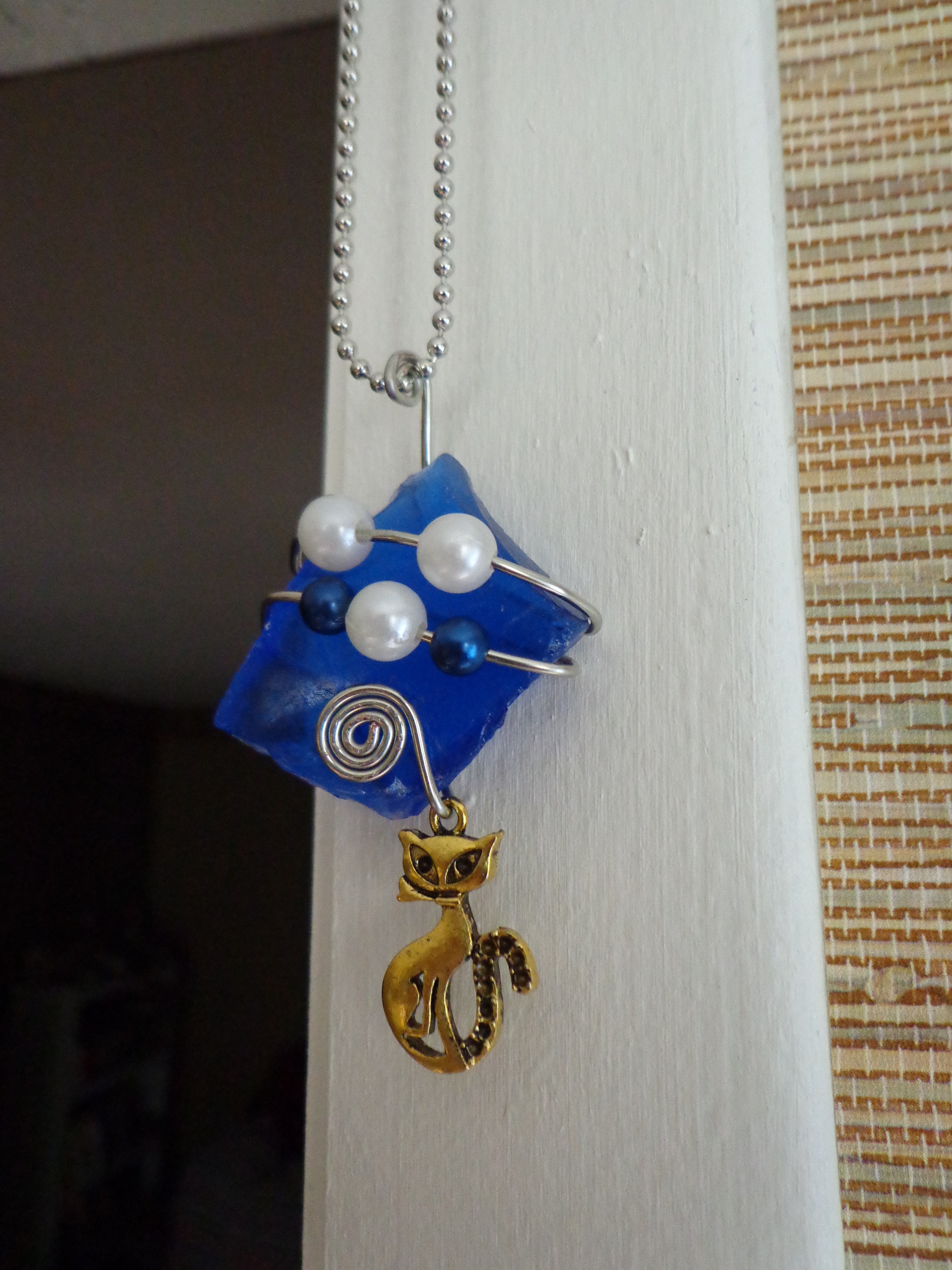 I already own a piece of beach glass jewelry. This is a pendant that my mom made me from a piece of glass that I found on the beach. It’s the only piece I’ve ever found, and I didn’t think too much of it. When I brought it home my mom instantly saw it in a necklace. She’s really good with these kinds of things and I love what she did with this piece.
