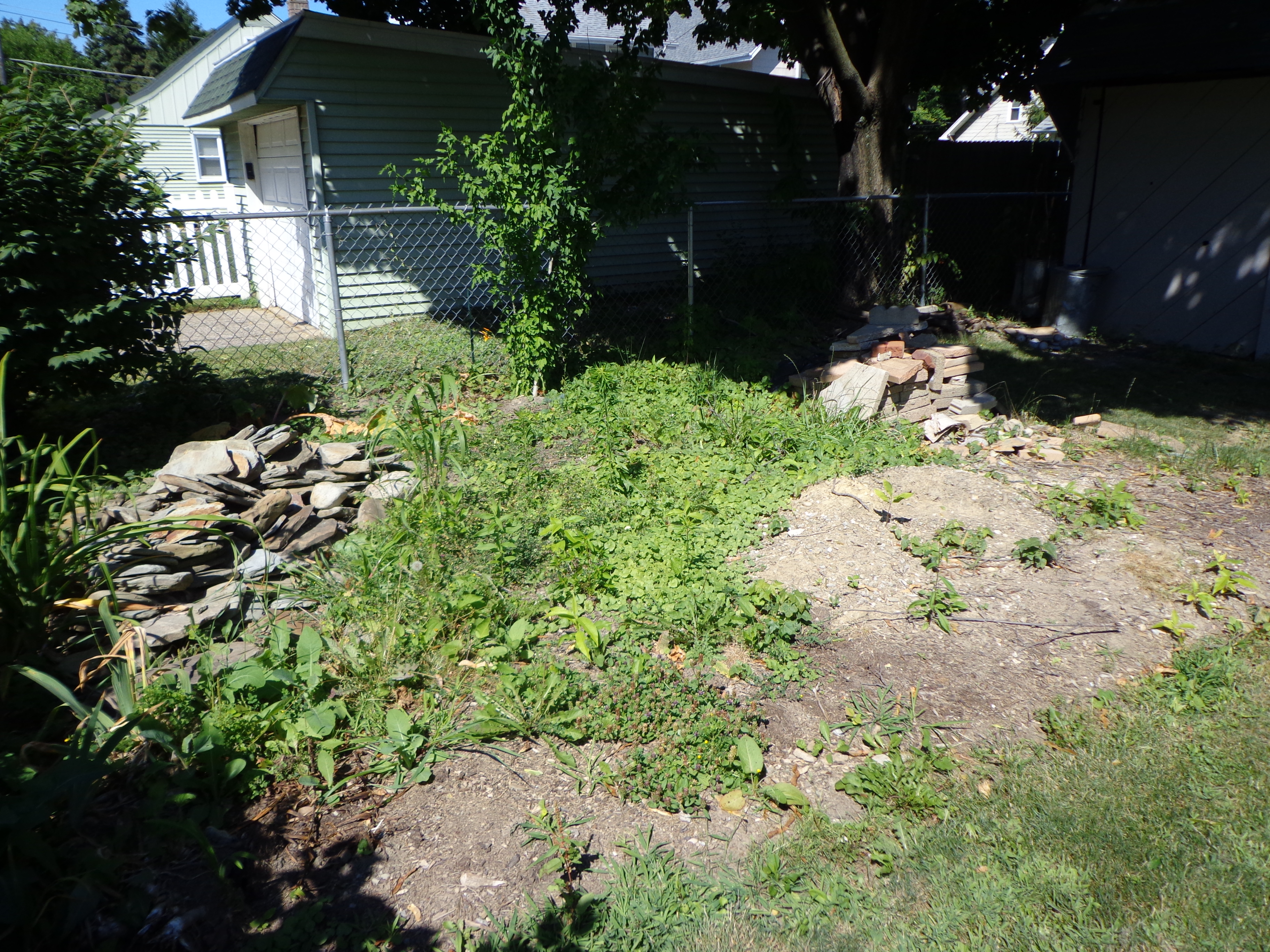 In the past year I used this area to drop all of the extra stuff that I didn’t know what to do with: dirt, pavers, tiger lilies and irises.