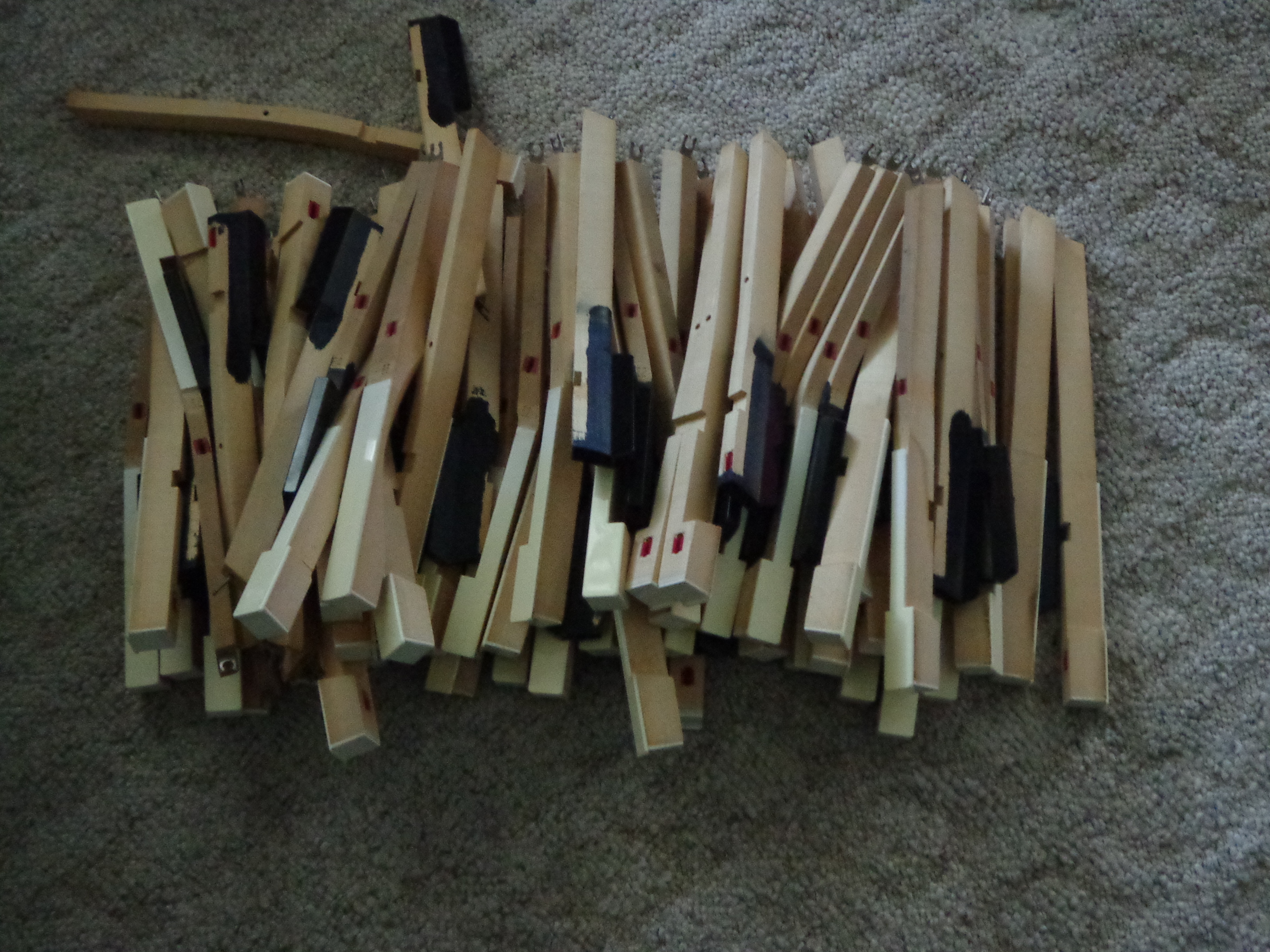 One of the points that stumped us for a minute was how to remove the keys. We had to figure out how they were attached to the hammers, and then after that it was a breeze to get them apart.