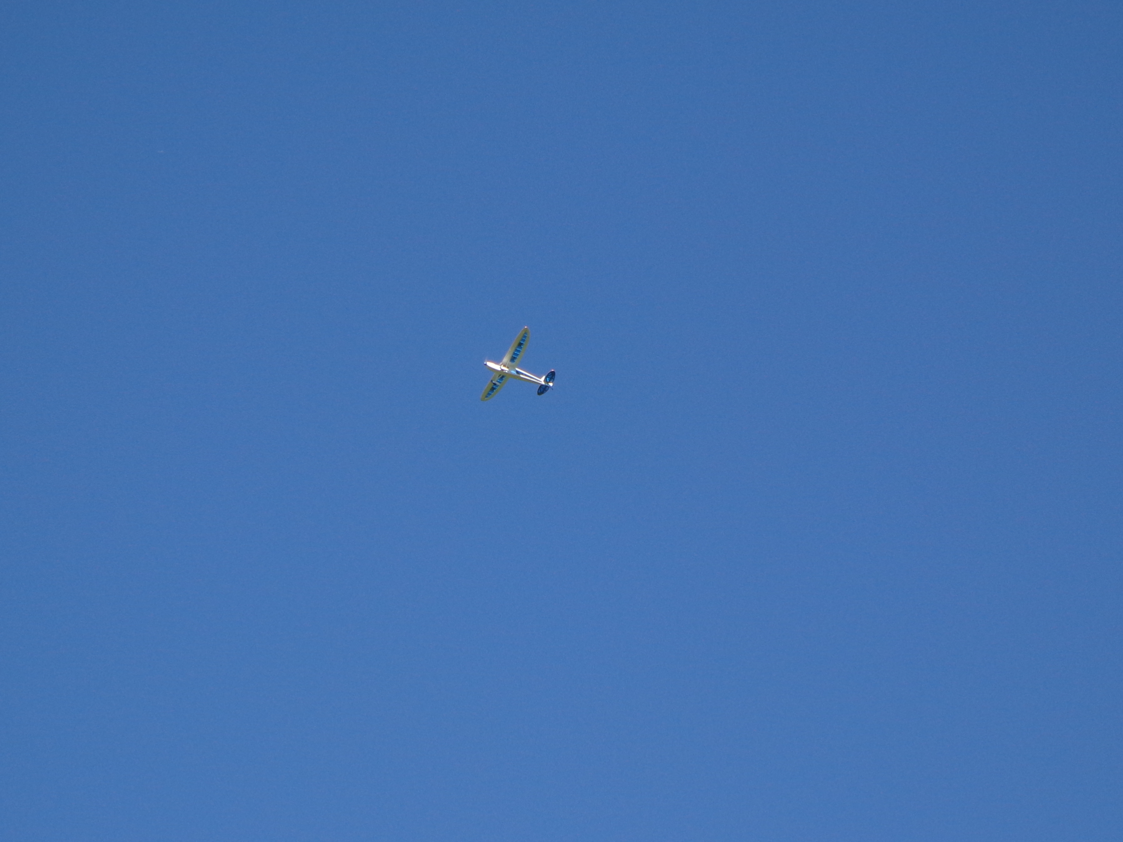 …. and he went screaming straight up into the sky! Just like a jet!! At the top of his climb he fell over, and dove straight down. The bugs were smashing all over his wings and wheel pants, but he didn’t care… HE WAS FLYING!!!