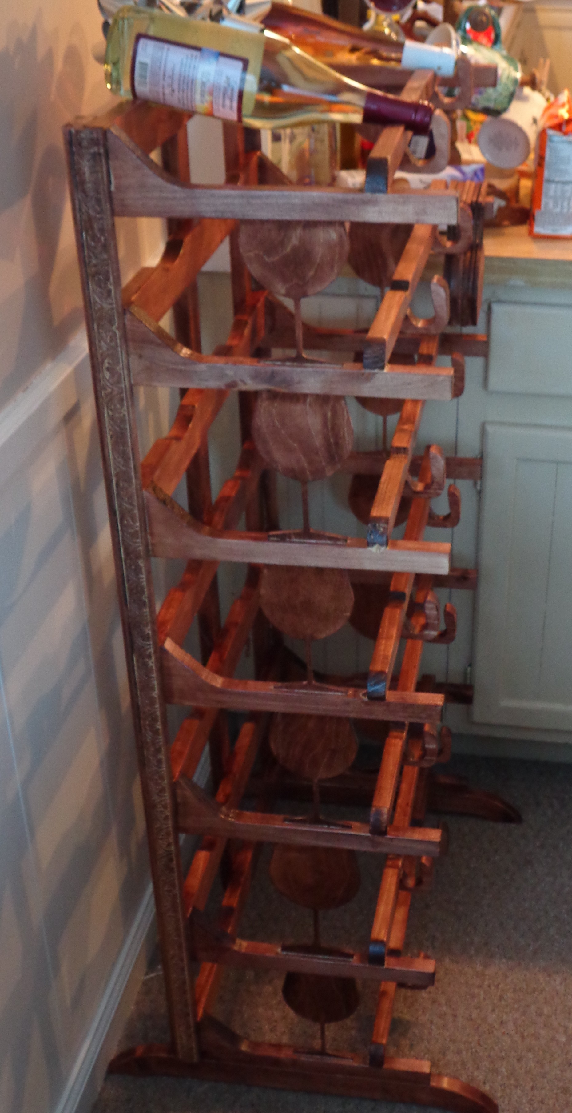 For Christmas Jay made me a wine rack. It is beautiful and really does a great job. As we were designing it I suggested that he cut out wine glass shapes and use those as the side supports.