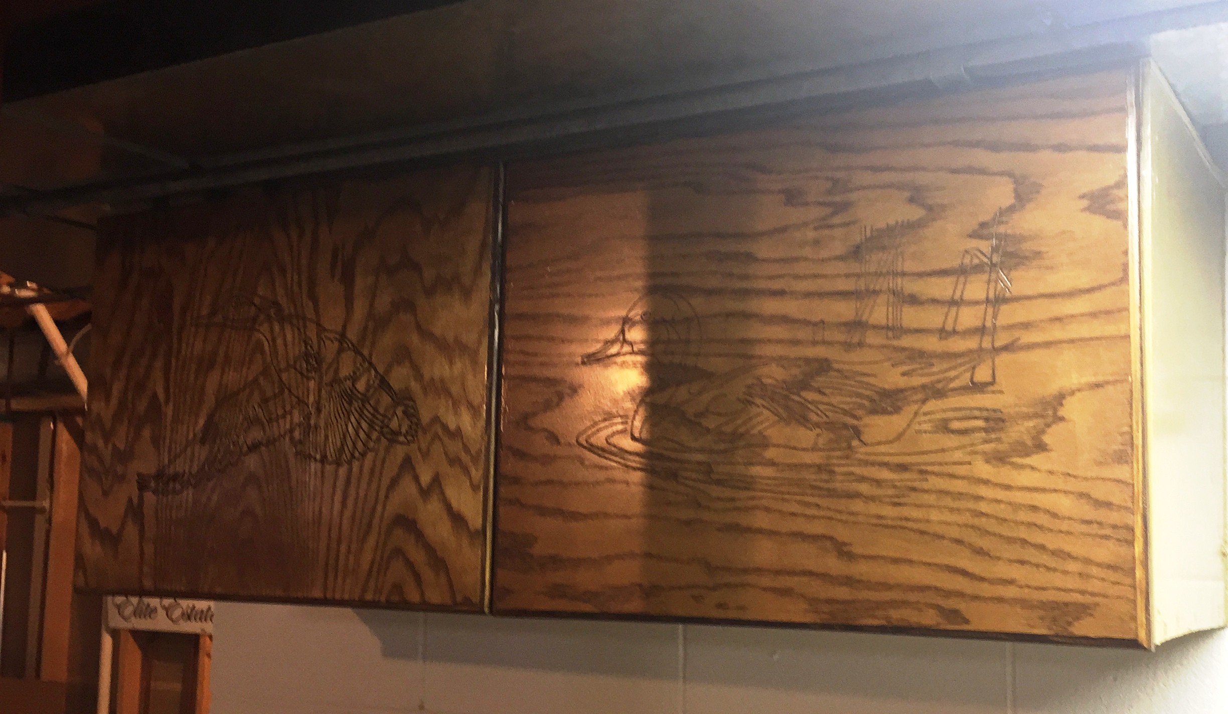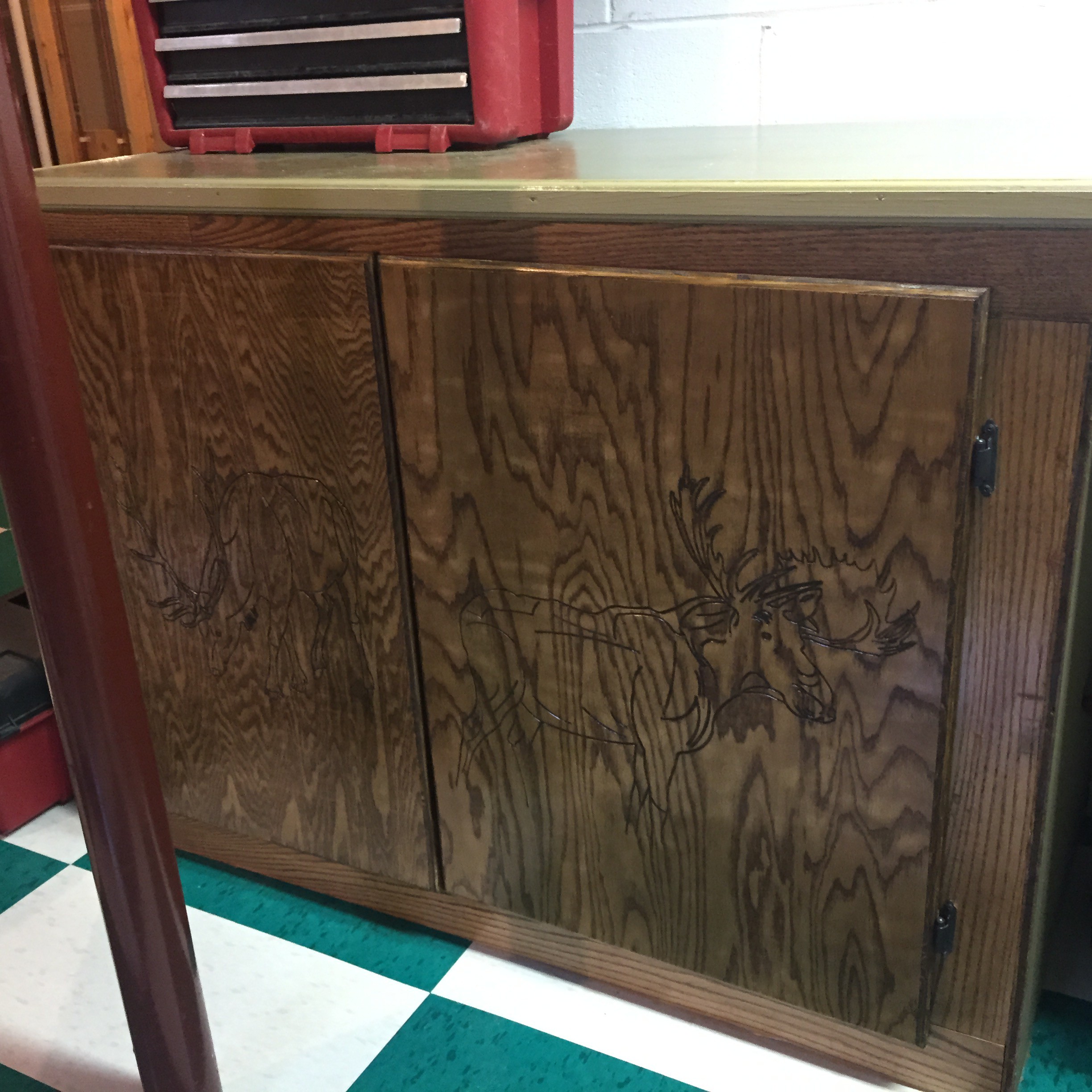 I was worried that once he stained them the grain of the oak would overshadow the routed image. Maybe you just have to look at it from a different angle. You can actually see the moose in this one.