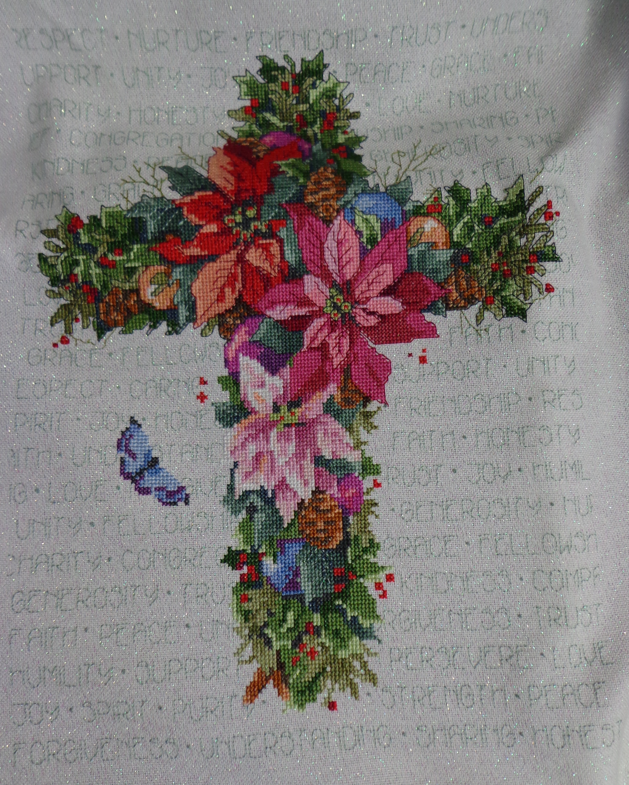 So when I realized that I had to start backstitching the leaves on this cross… I found other things to do. Then I decided that I had to make myself sit down and work on it. If I didn’t, then it would forever stay at this stage. We can’t let that happen!