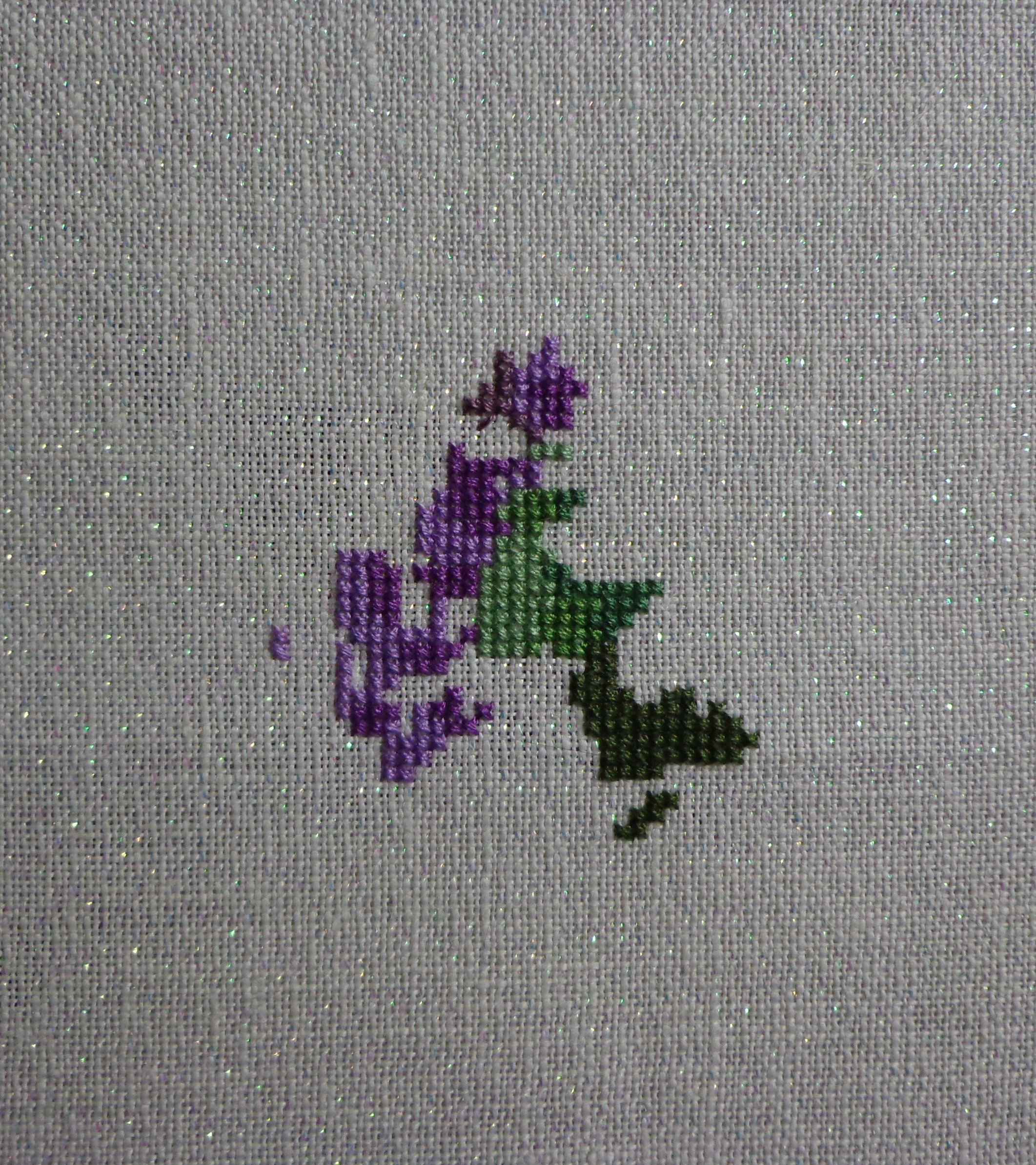 And here it is as of the 9th. The grapes really stand out next to those green leaves. There was a bit of a decision for me to make because I wanted to work on this one in the same way that I worked on the Winter Cross. I am going to stitch the left arm and then work my way clockwise around the cross. The problem was that the daisy to the right of the grapes overlap onto the right hand side of the cross. This doesn’t sound like a big deal, but if you’re weird like me then you know that this could be a struggle. Actually, the biggest pain for me was the fact that the daisy overlapped two of my working pages. So I had to constantly flip between the two pages and hope that I wasn’t miscounting. Once I am done with the daisy I will return to the left-hand side of the cross and continue working my way around in that manner.