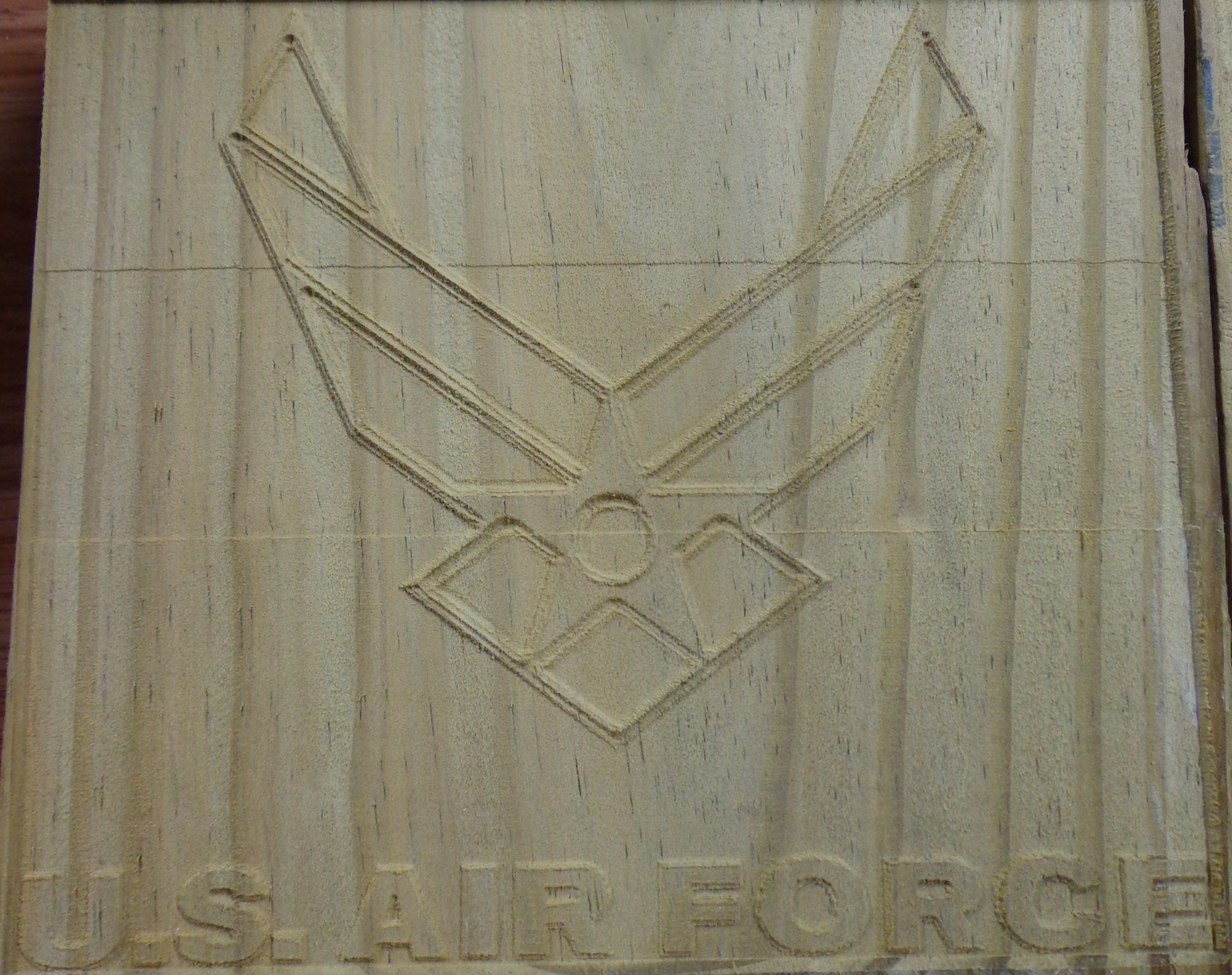 Again, depending on the shades of color used the router either routed more or less. The Air Force logo has some dimensional effect so you can see how that translated on the router.