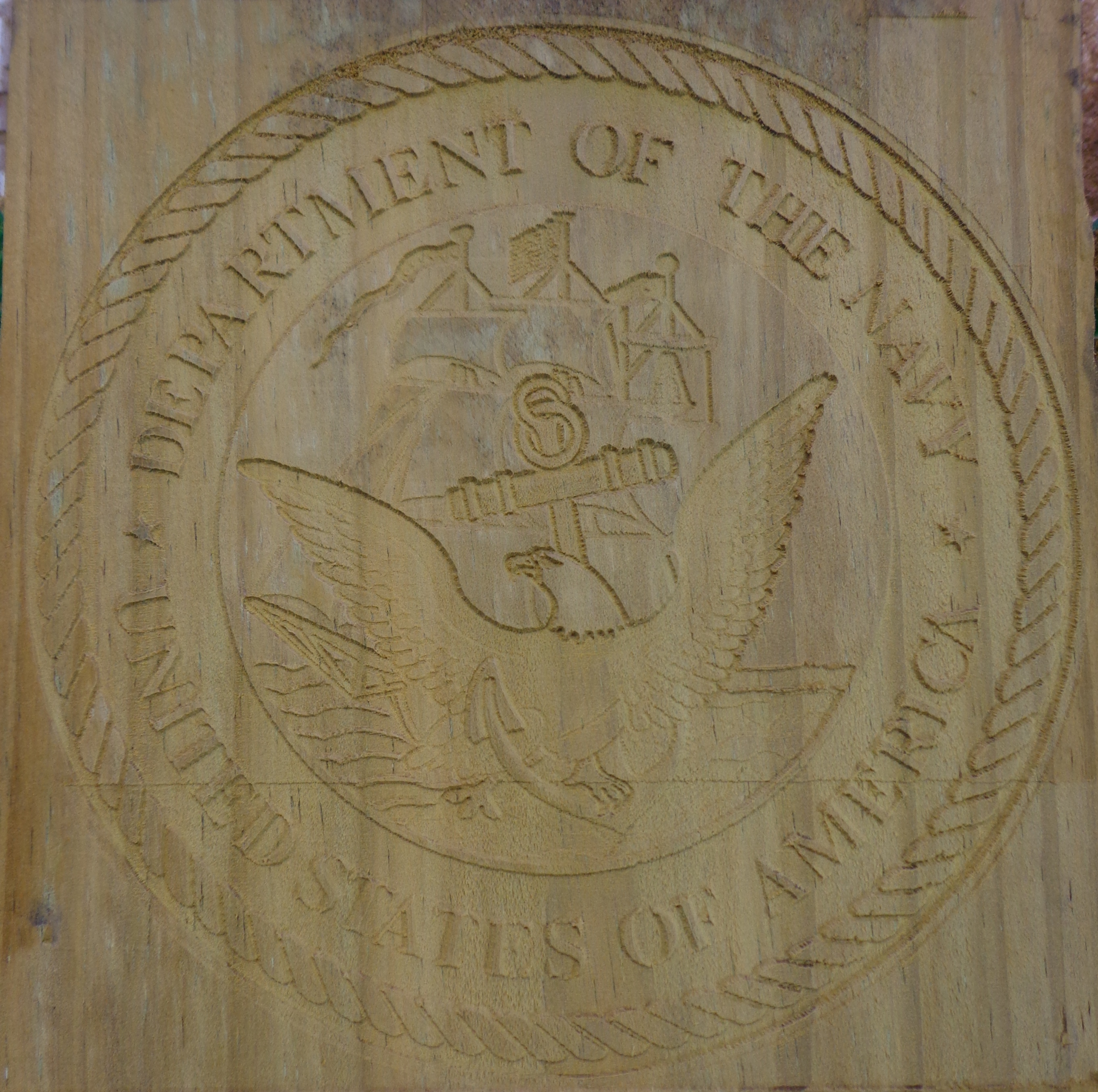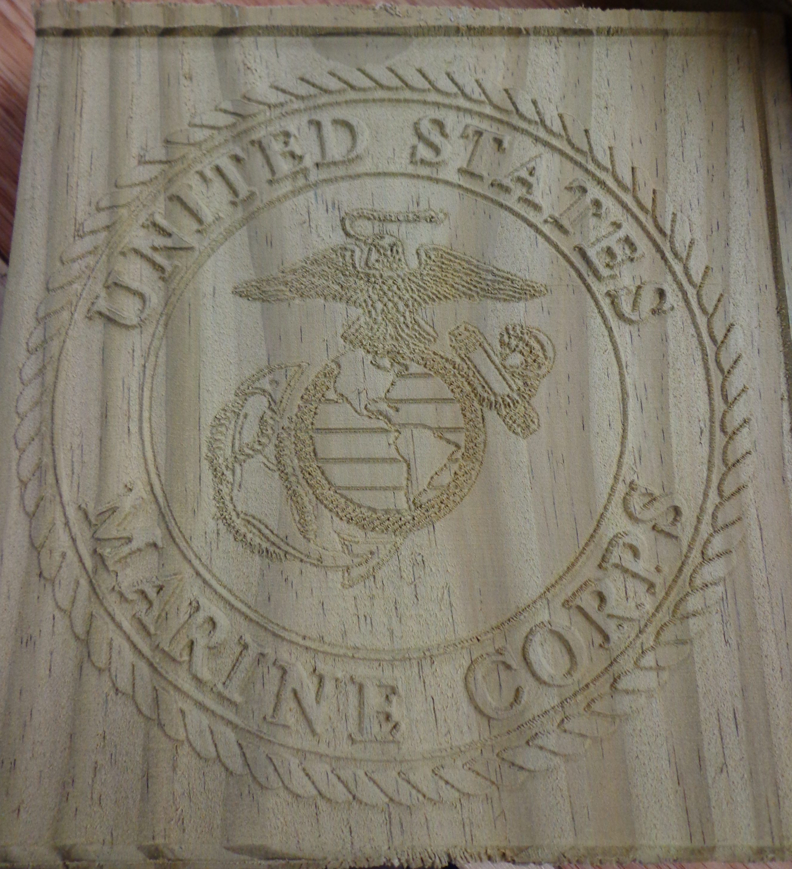 Since there wasn’t a whole lot involved in the Air Force and Army logos they weren’t really that interesting for me to watch on the machine. The Coast Guard, Marines and Navy had more detail since Jay used the actual seals for these branches. The Coast Guard’s rope border looks like it’s sunk into the wood…