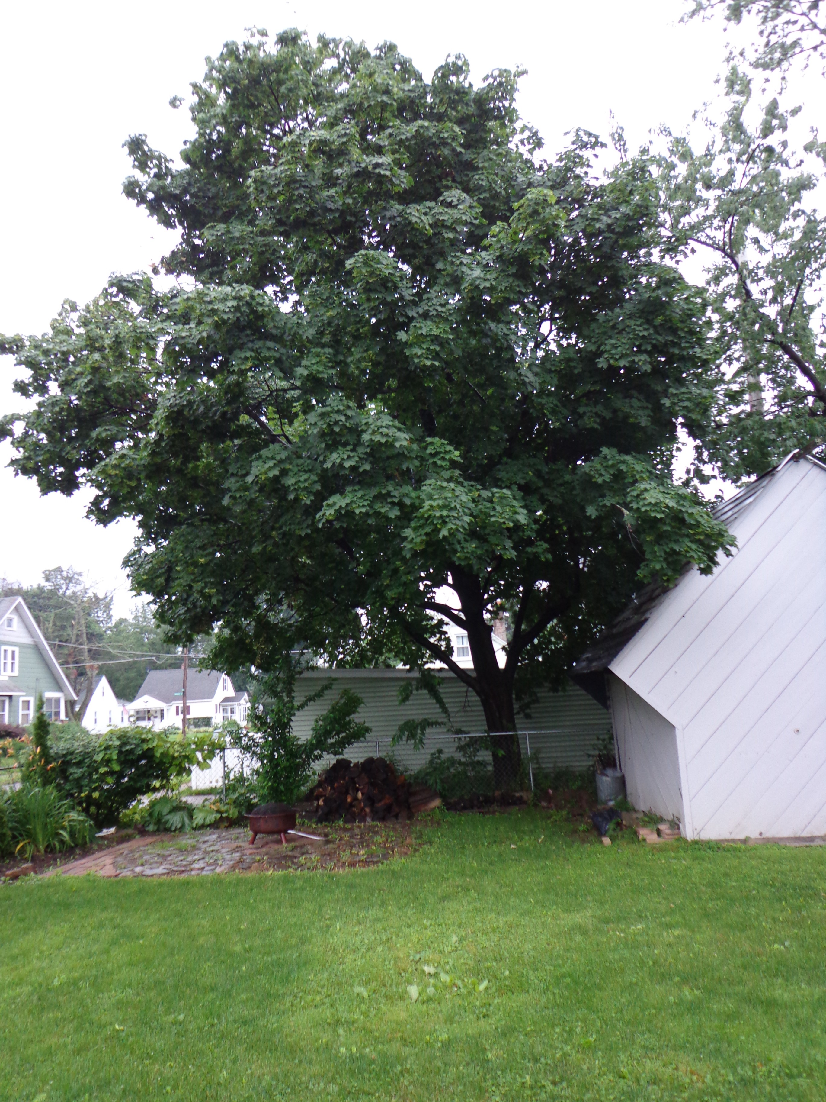 Except we had that giant maple tree that hung over our side of the fence. I don’t like maple trees because they are so dirty and they drop pollen all over everything. Considering I’m allergic to almost EVERYTHING that grows outside, having this monstrosity hanging over our property didn’t make me very happy.